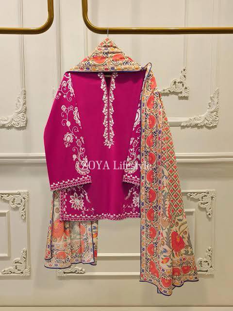 Home 3 Piece Agha Noor inspired stitched 3 piece Farshi salwar set