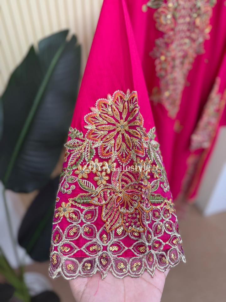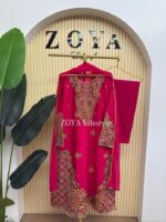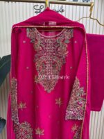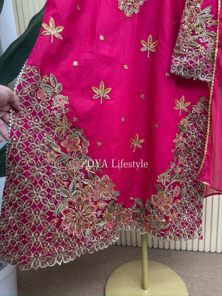 Material: premium jacquard cotton with embroidery and sequins work on all over body and sleeves. Cotton Pant. Georgette dupatta.