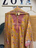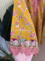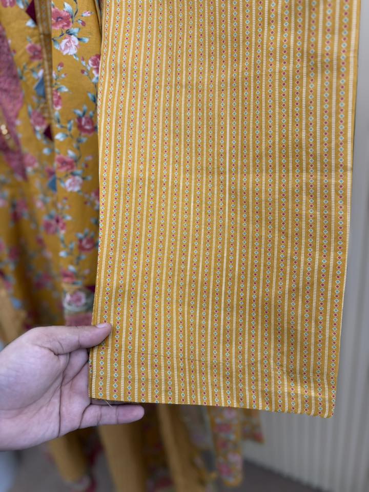 Material: cotton with embroidery work on neck , sleeve and both side damaan.Side belt on waist for adjustment. Pant cotton.