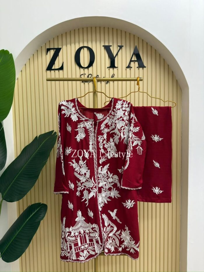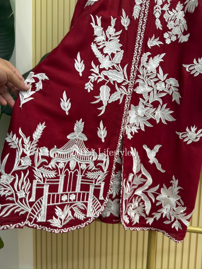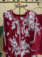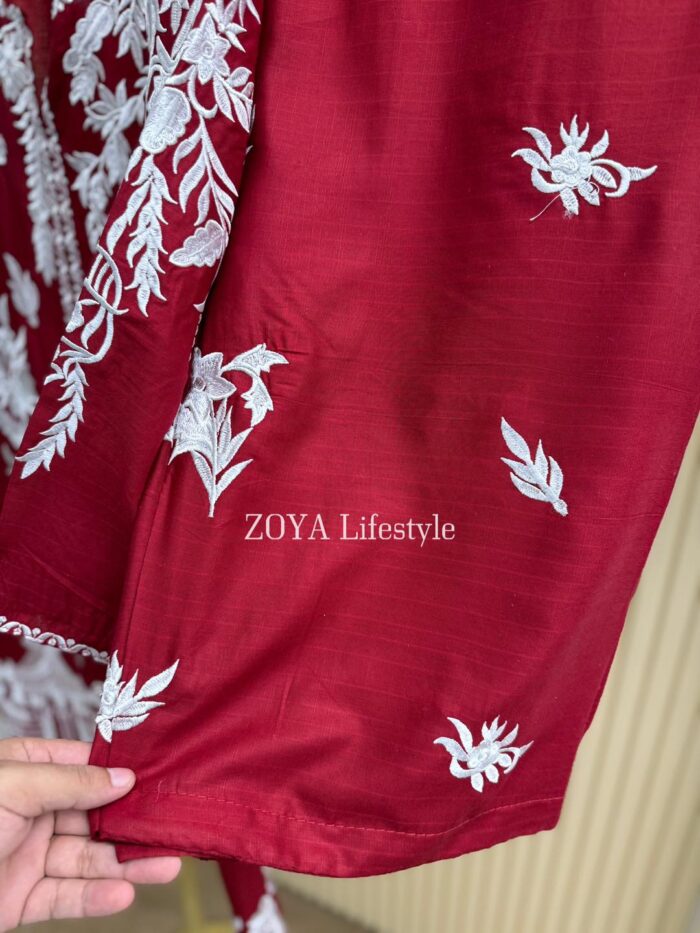 Material: Shiny Cotton kamiz with embroidery work on full front and back side. Pant shiny Cotton with embroidered work.