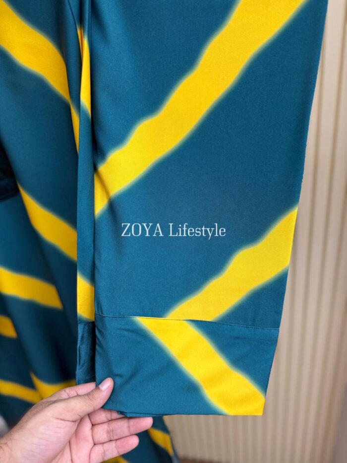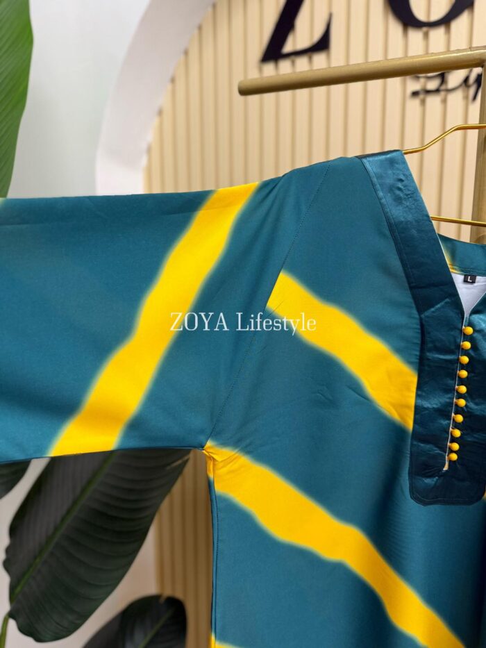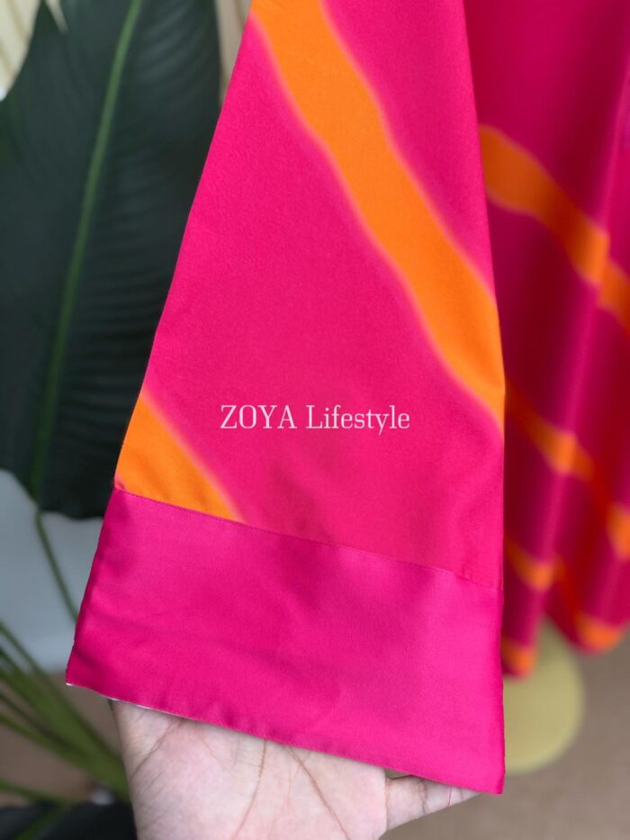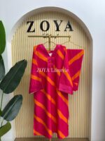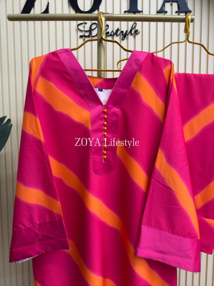 Material: Silk with tie dyed design on whole body. Buttons work on neck. Pant tie dyed silk fabric.