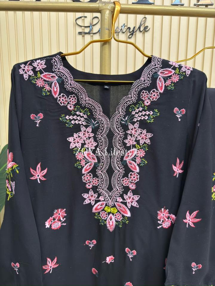 Material: Cotton with embroidery work. Plain Pant.