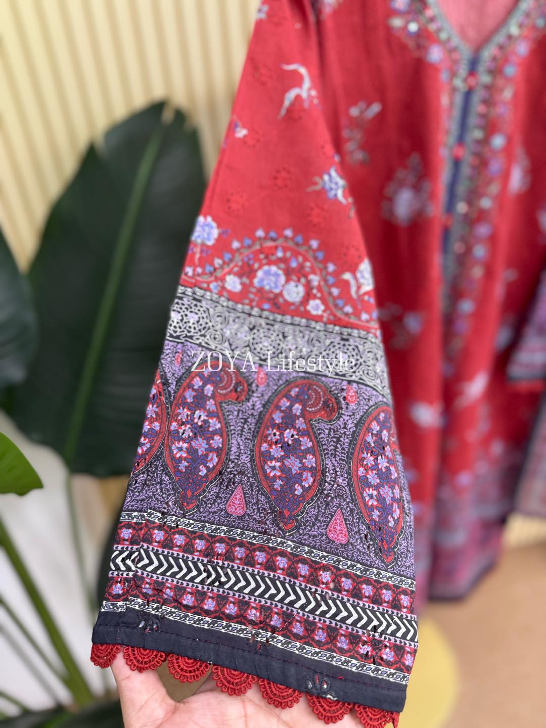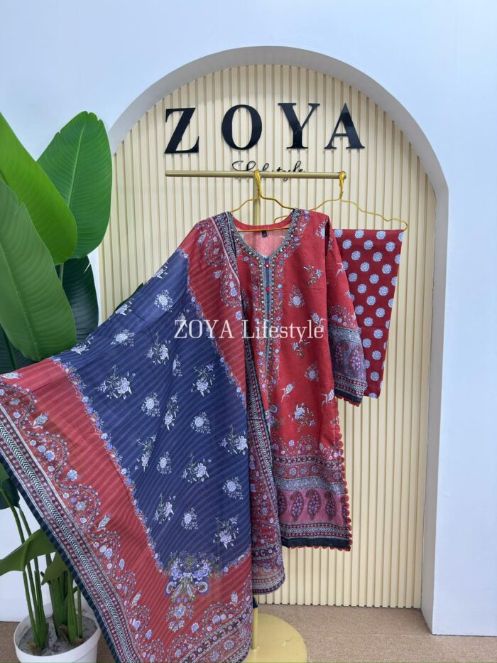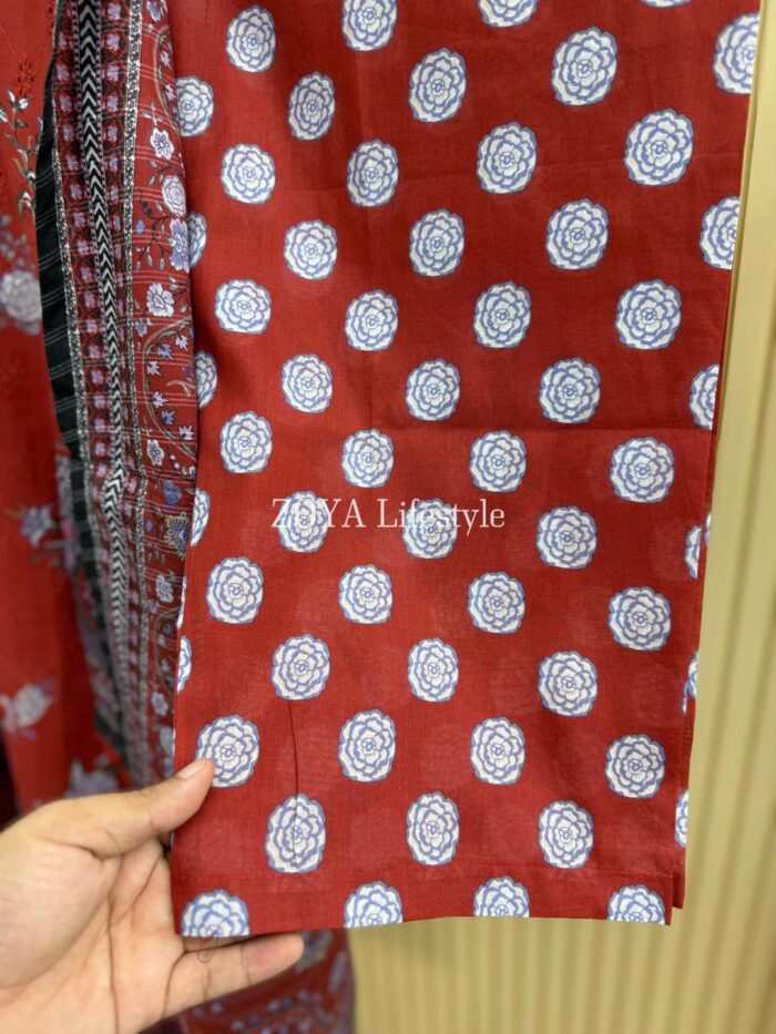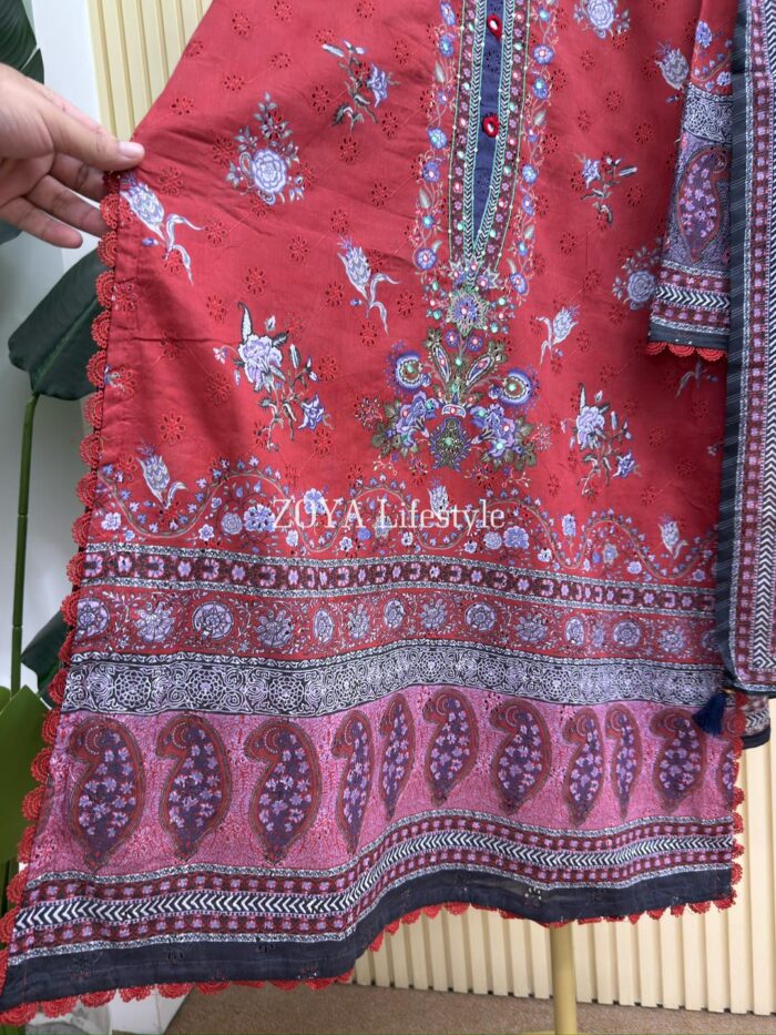 Material: Chikankari Cotton with mirror embroidered on neck. Front half body inner attatched. Kota Cotton printed orna. Pant printed cotton.