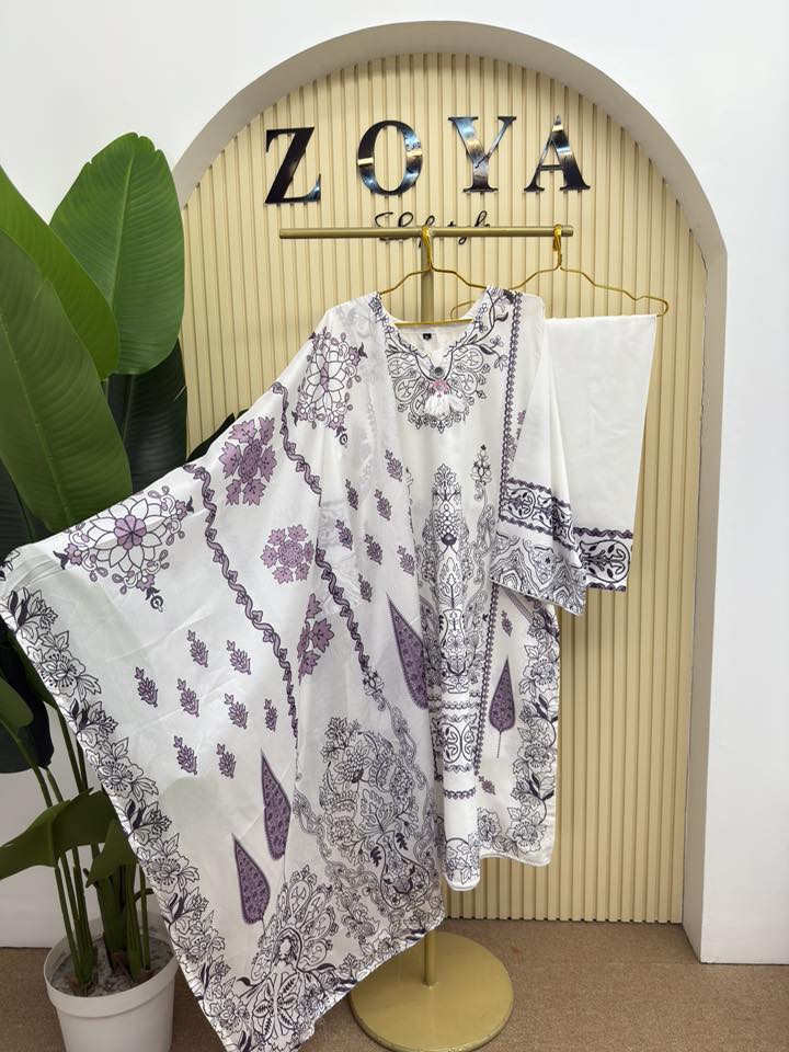 Material: Premium Silk kamiz with all over digital prints. silk printed pant. Silk Dupatta.