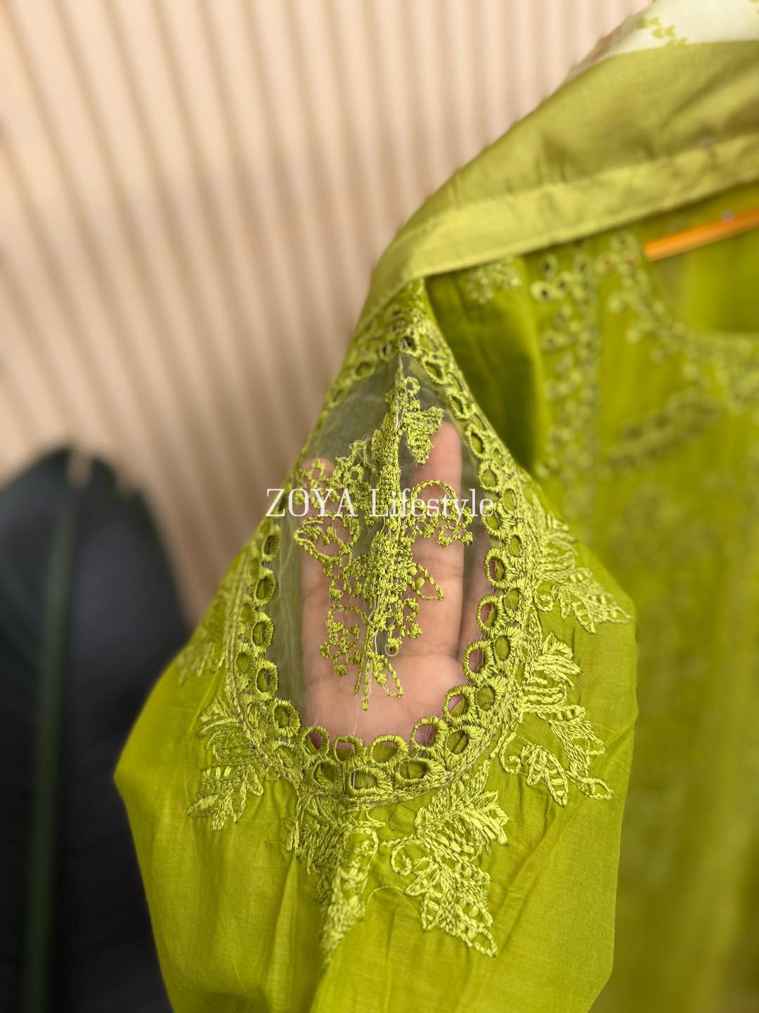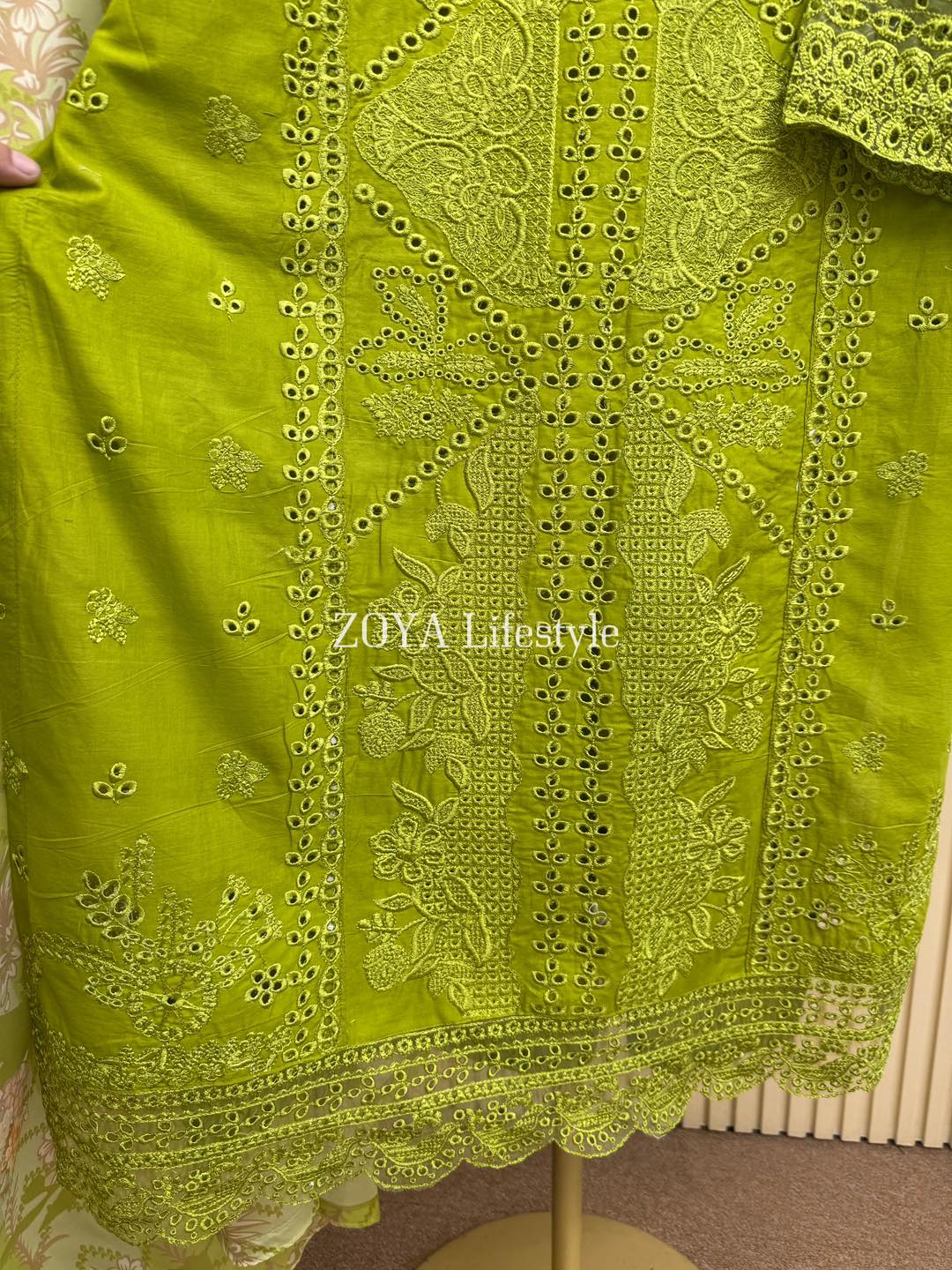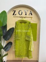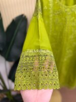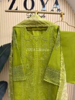 Material: Cotton kamiz with chikankari embroidery work on full front part. You need to wear inner. Pant Cotton. Silk dupatta with all over print.