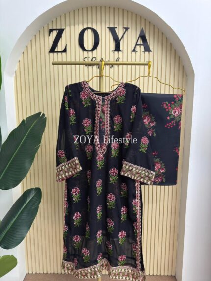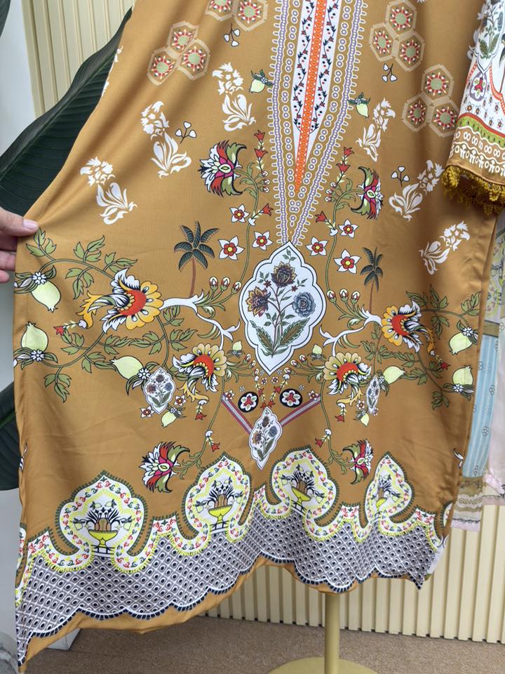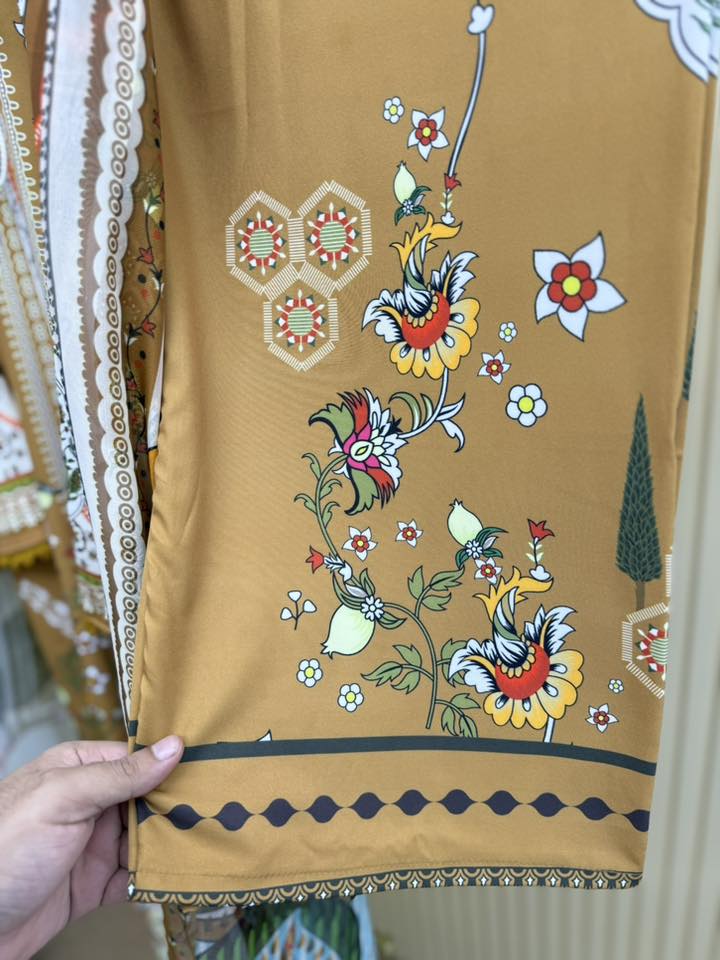 Material: Premium Dubai cherry Silk kamiz with all over digital prints. Dubai silk printed pant. georgette Printed Dupatta.