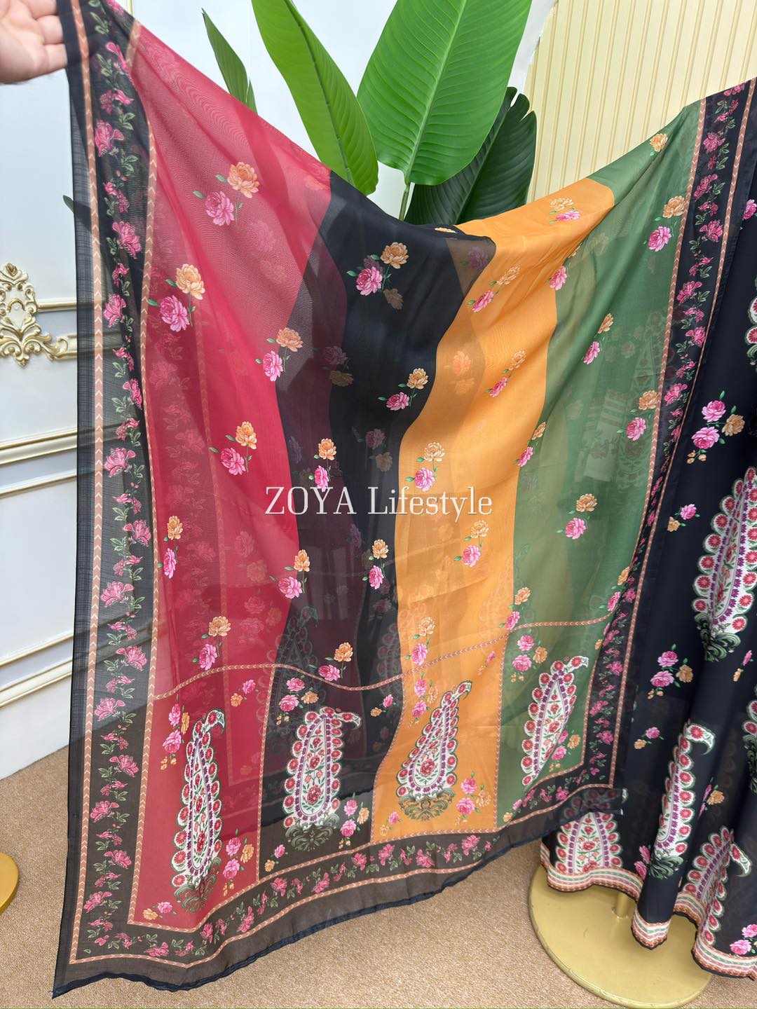 Material: printed Georgette kamiz. Inner both side attached. Georgette orna and cotton pant.