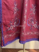 Material: Stripe Kota cotton with karchupi hand work on full body. Lace border on sleeves, side border and damaan. Embroidery work on sleeves. Cotton pant. Kota cotton orna.