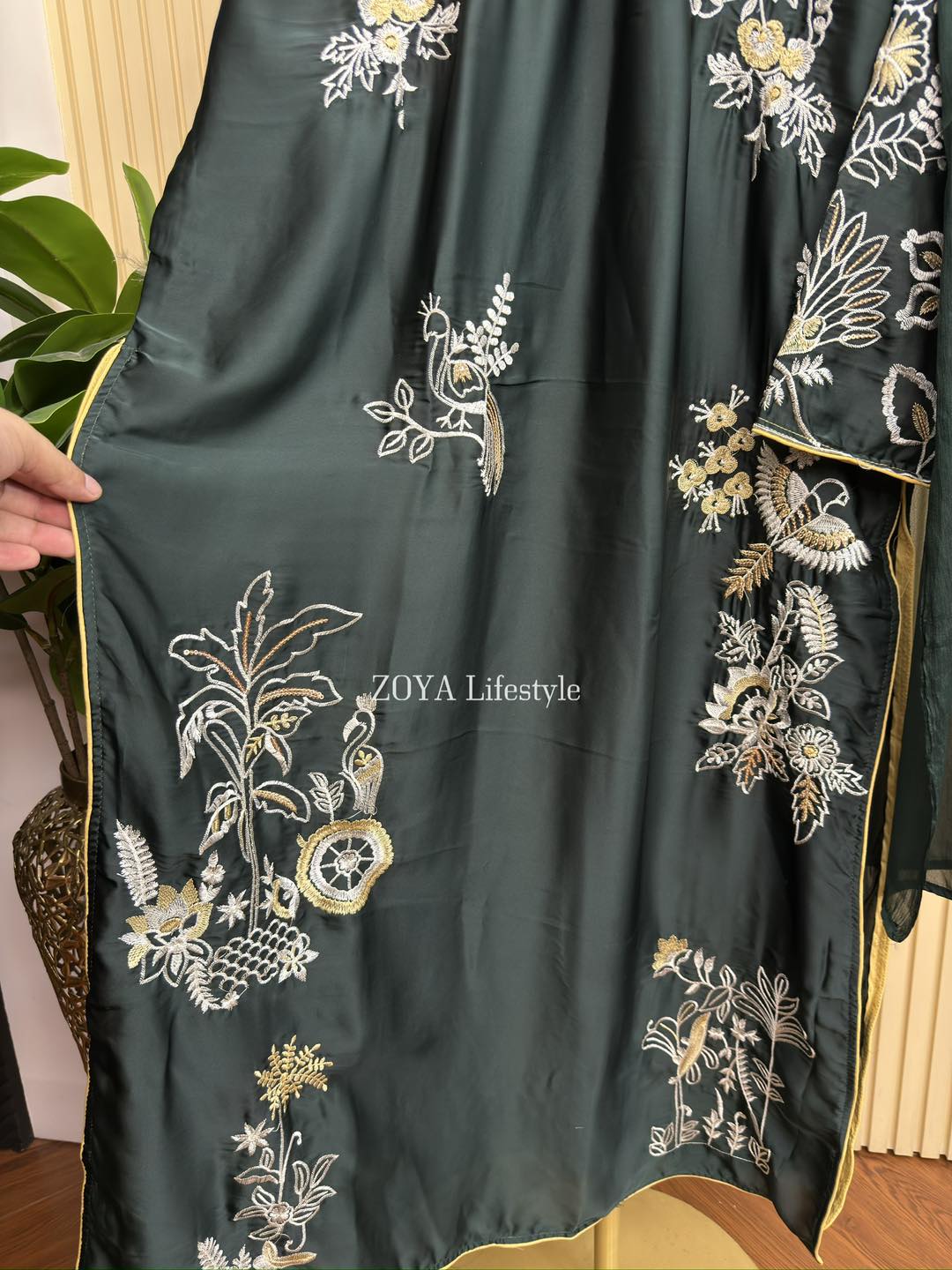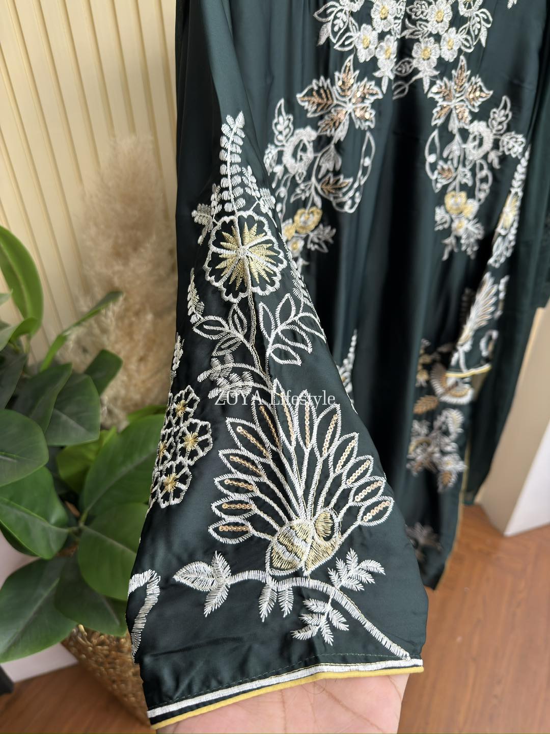 Material: Premium Silk with embroidery & sequins work on all over body. Cotton Pant. Chiffon dupatta.