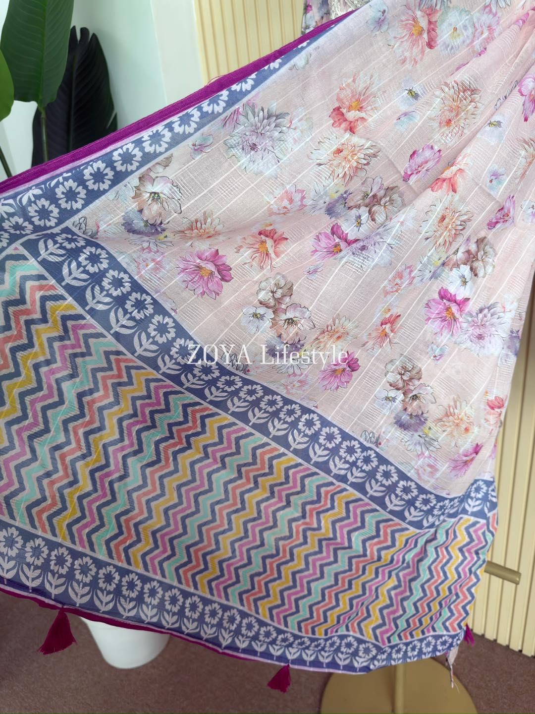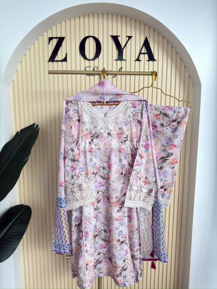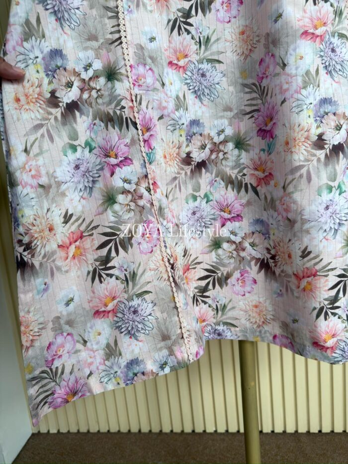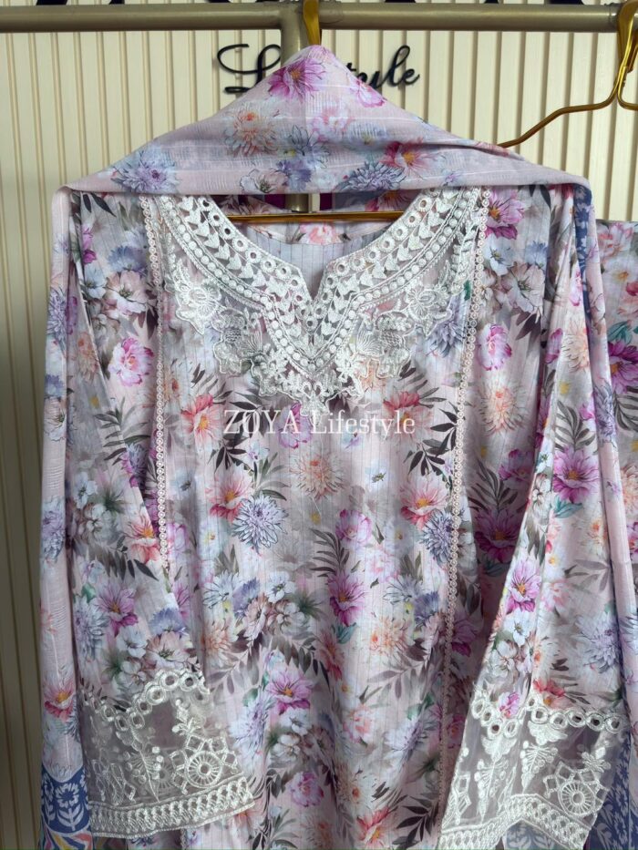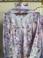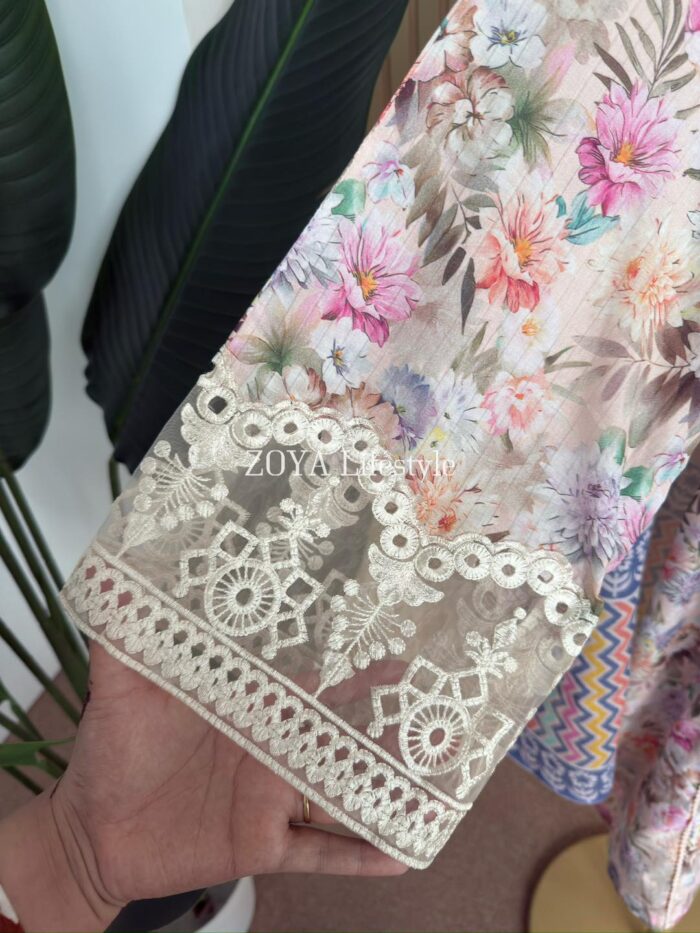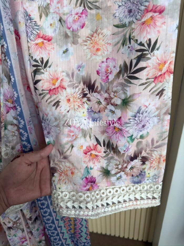 Material: Jaquard Cotton with embroidery work on neck, sleeves. Kota Cotton orna. Pant Jaquard cotton with embroidered border.