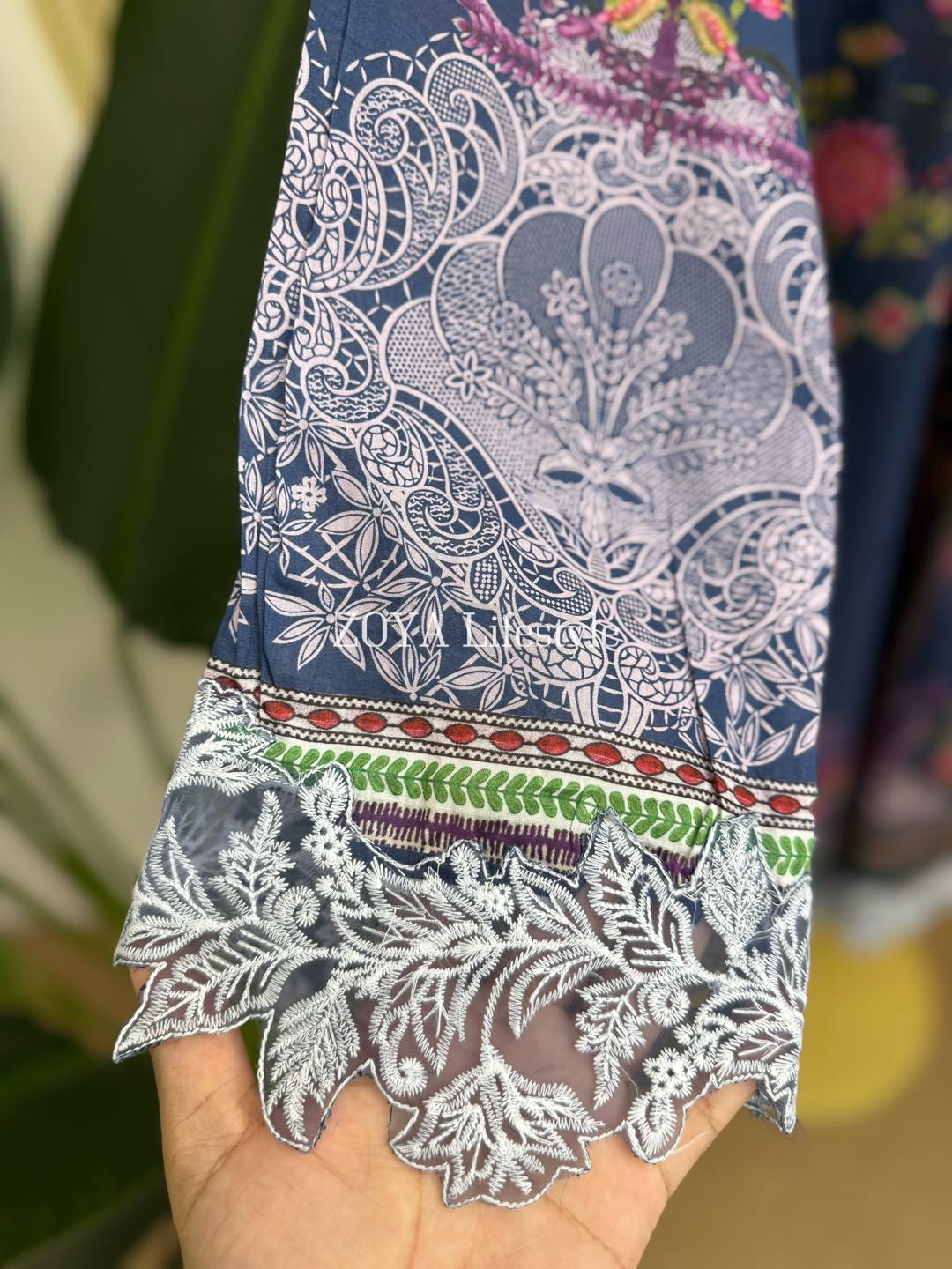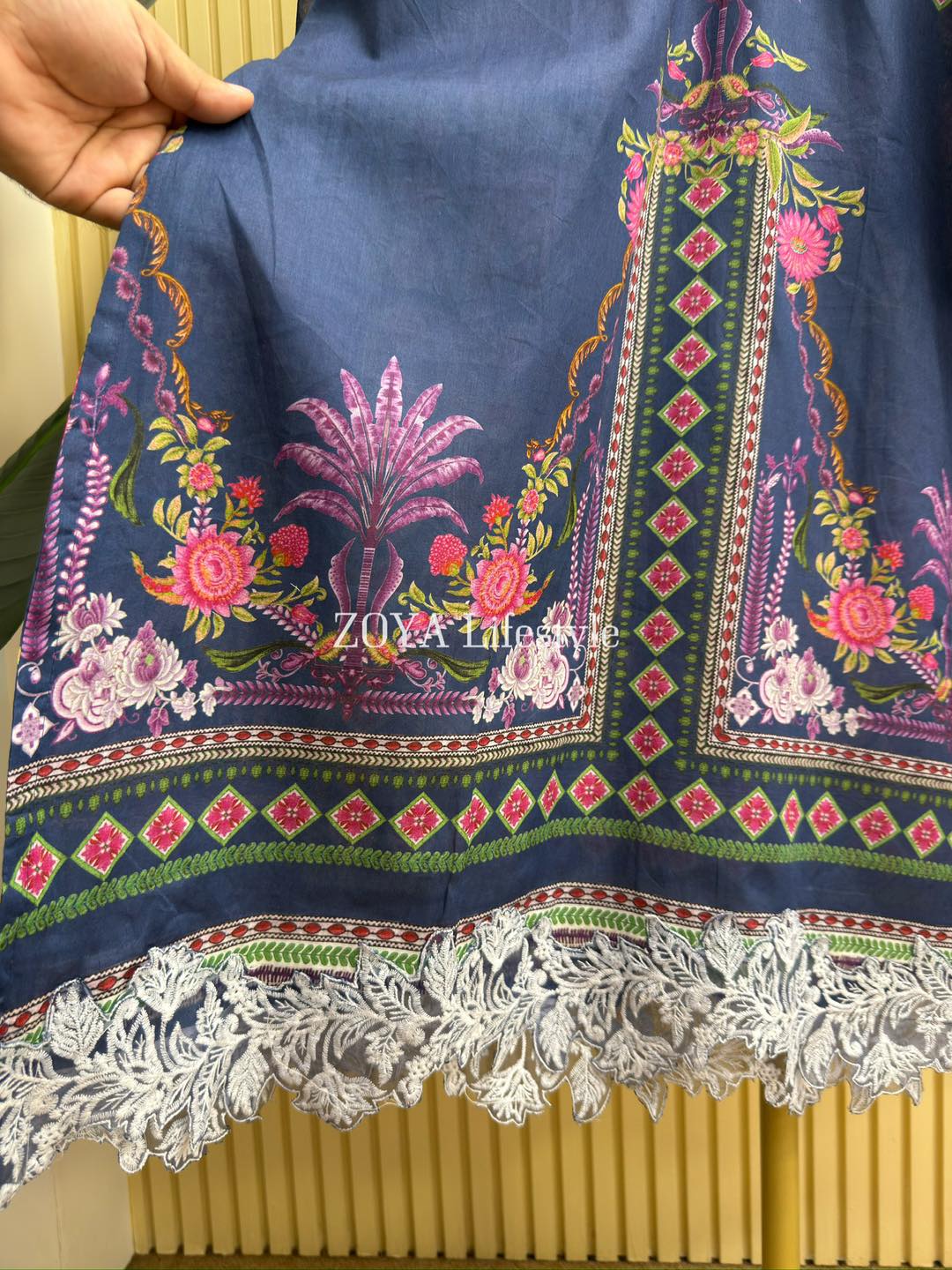 Material: cotton with embroidery work on sleeves and damaan. Kota Cotton printed dupatta and cotton pant.