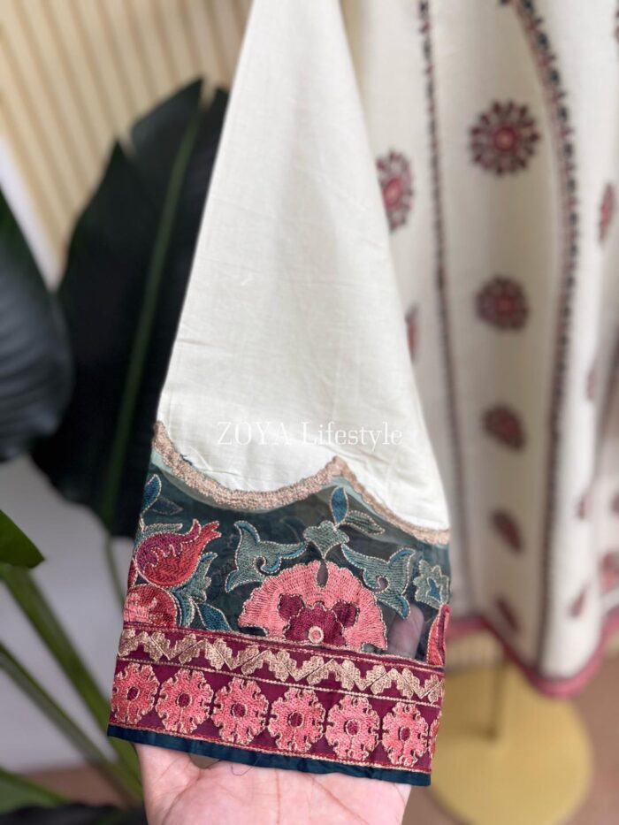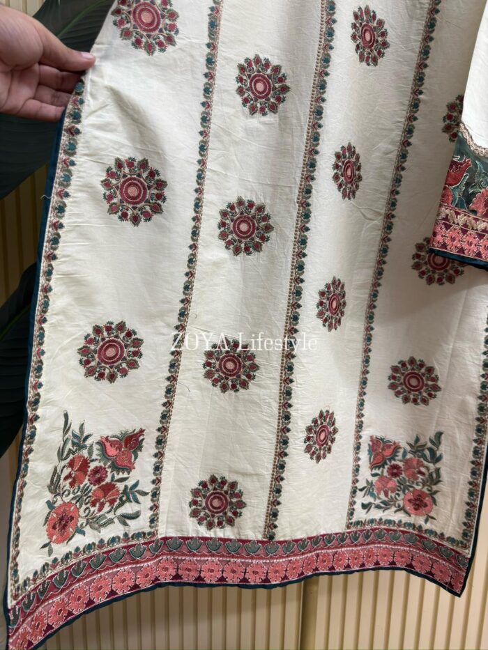 Material: Cotton with Embroidery work on neck & sleeves, full body and damaan. You may Need to wear inner. Cotton pant. Maisuri cotton printed orna.