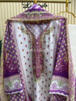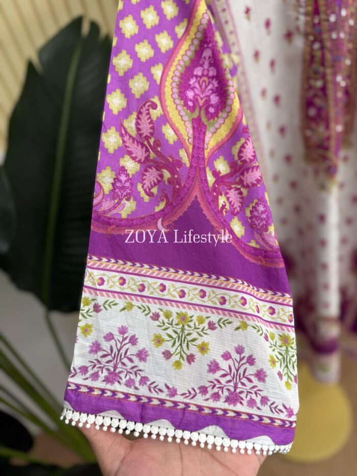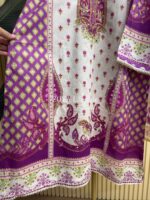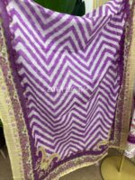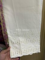 Material: Stripe cotton with mirror work on neck & damaan. Lace border on sleeves and damaan. Kota Cotton printed dupatta and chikankari cotton pant.