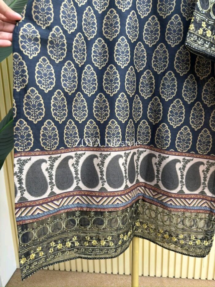 Material: Cotton with sequins & Jori embroidery work on neck, sleeves, front-back damaan. Cotton printed orna. Pant cotton.