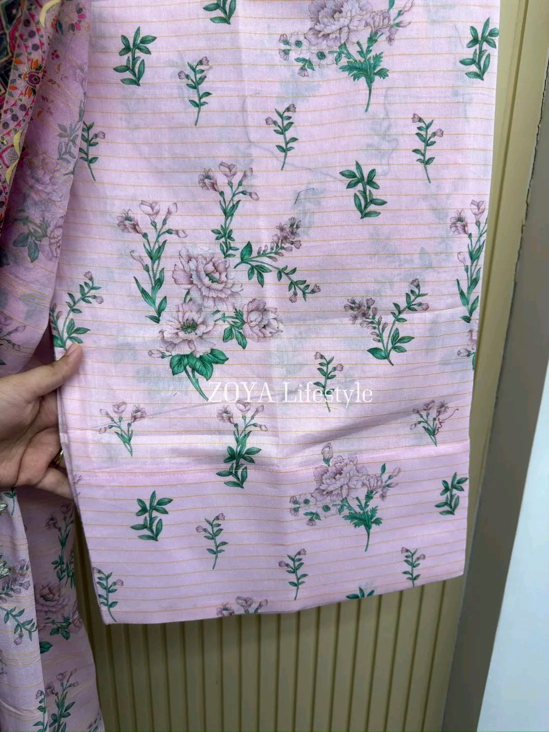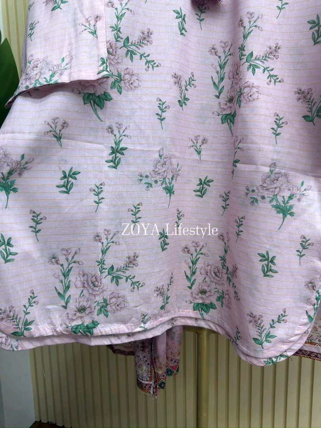 Material: Jaquard cotton with all over print. Cotton printed farshi pant. Orna cotton with all over print.