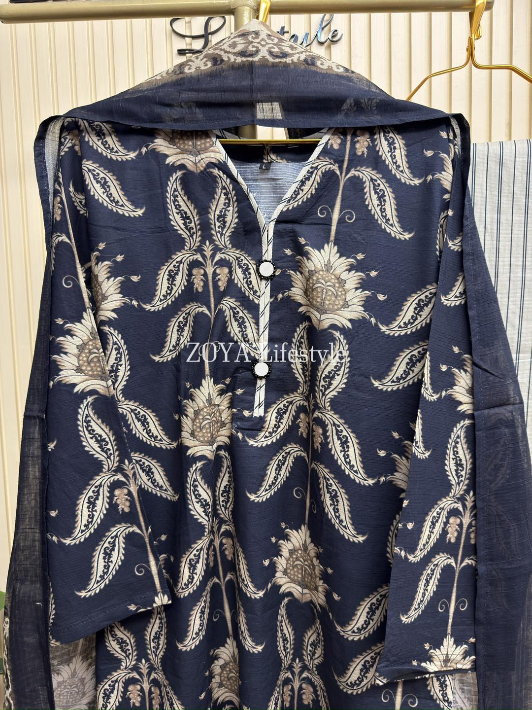 Material: Jaquard cotton kamiz. Kota cotton dupatta. Cotton farshi pant.