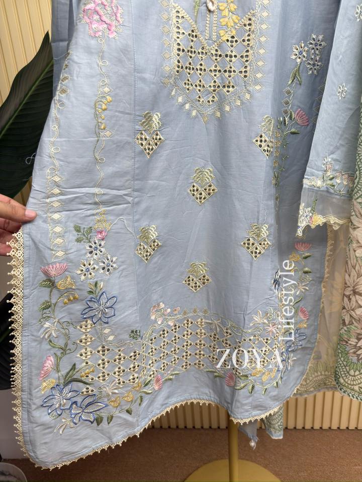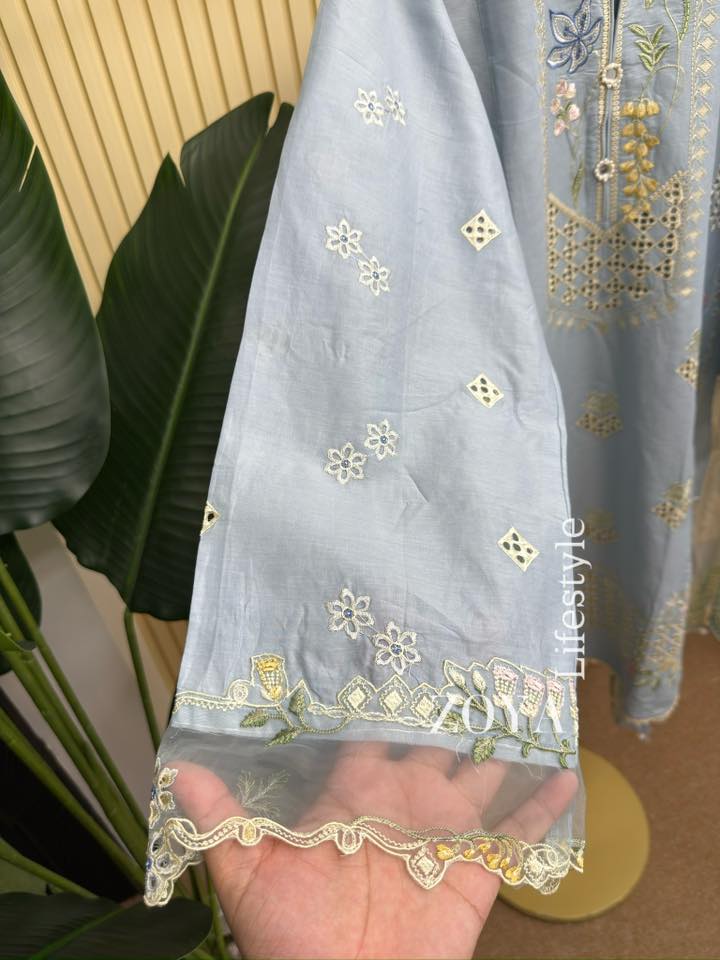 Material: Cotton with embroidery work on all over body. Maisuri silk orna. Cotton Pant with embroidered.