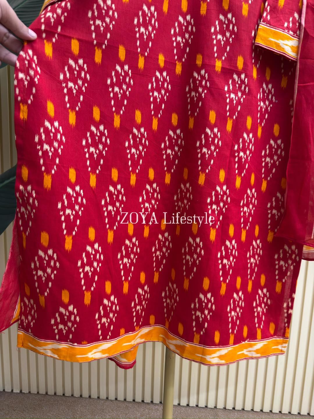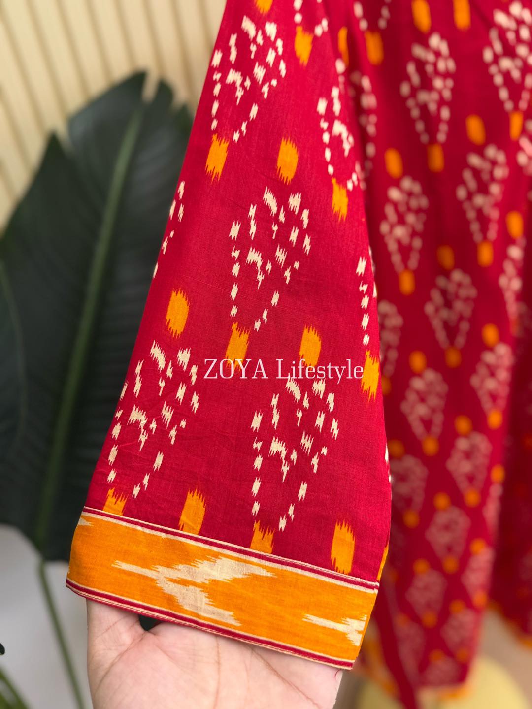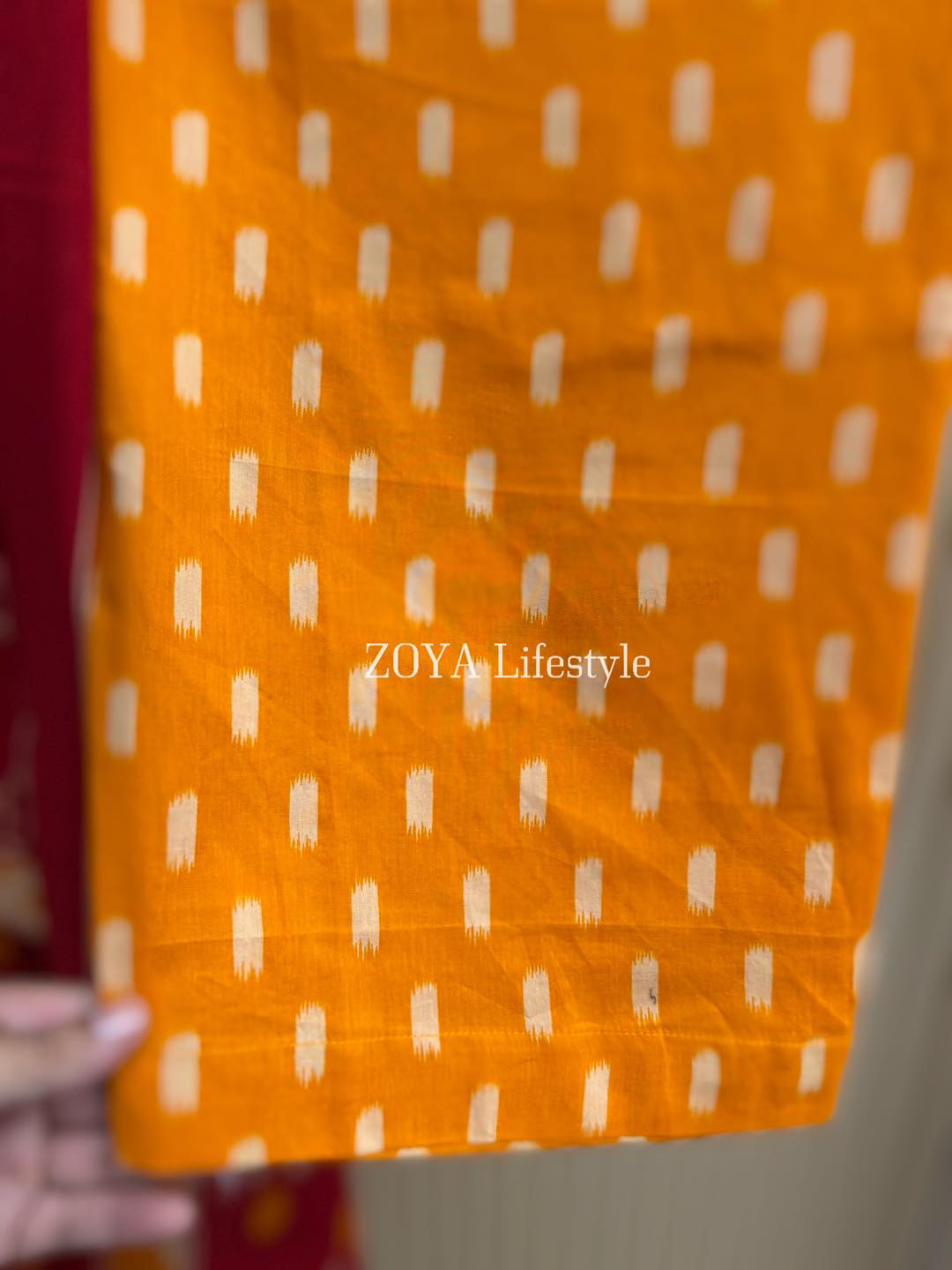 Material: Cotton with all over print. Button design work on neck. cotton orna. Cotton printed pant.