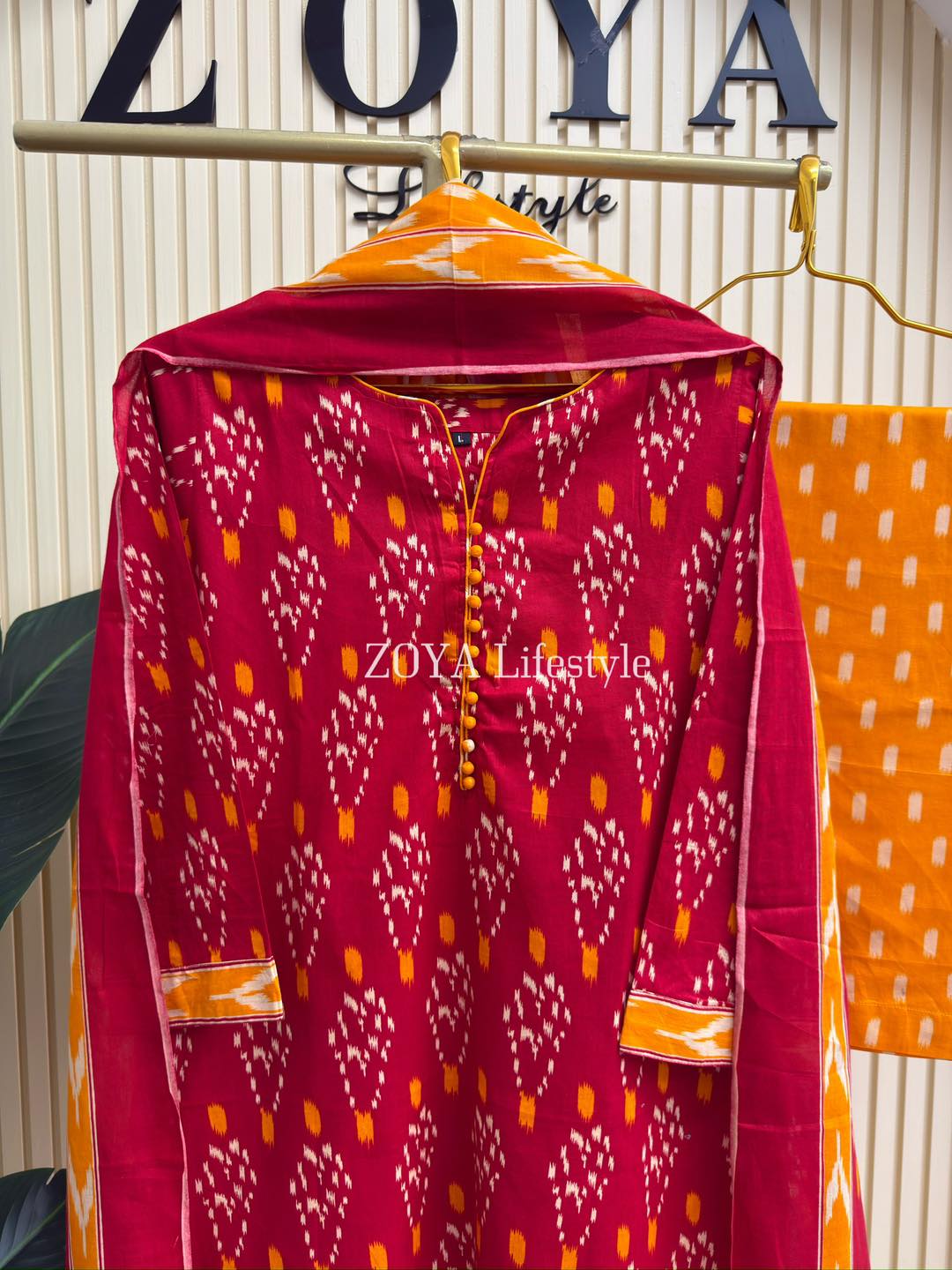 Home 3 Piece Indian Joypuri inspired print Stitched 3 piece kamiz Set