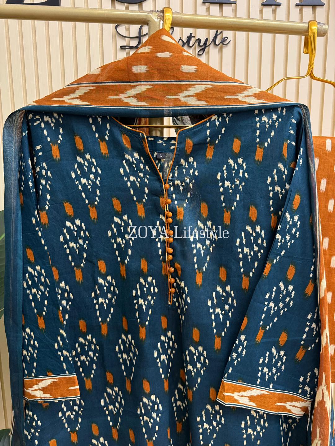 Be the first to review “Indian Joypuri inspired print Stitched 3 piece kamiz Set” Cancel reply