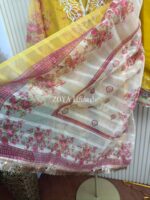 Material: Net kota with embroidery work on neck, sleeves, side border and damaan. Full dress inner attached. Cotton Pant with embroidery work. Maslin kota orna with embroidery work.