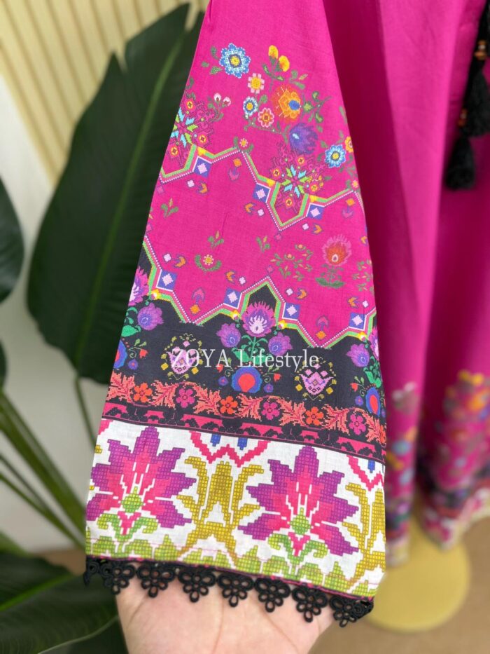 Material: Cotton with tassel design on neck. Lace design on sleeves. Cotton orna. Plazzo Pant cotton.