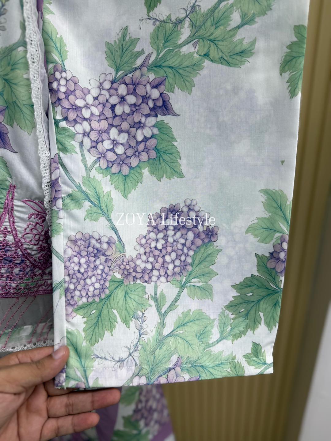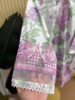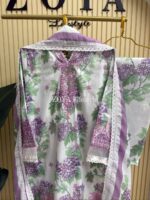 Material: Cotton Silk kamiz with all over digital prints. Embroidery work on neck to bottom. Silk printed dupatta with lace border. Cotton silk pant.