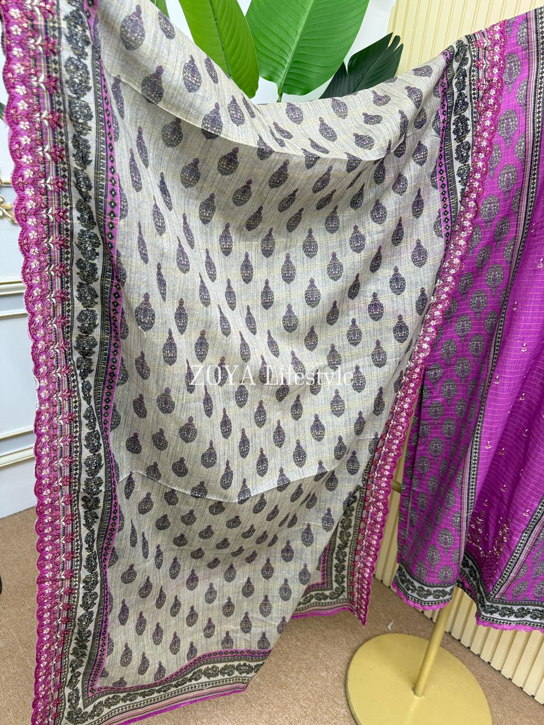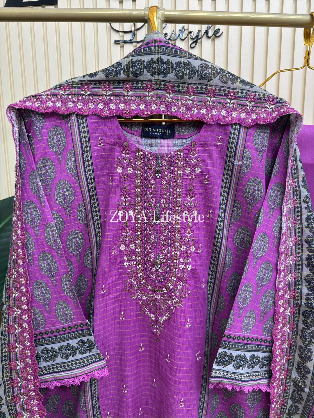 Pakistani Binsaeed inspired Stitched 3 piece kamiz Set