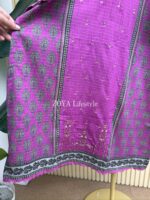 Material: Jaquard Cotton with embroidery on neck to damaan. Lace borders on sleeves and damaan. Kota cotton orna with embroidered borders. Cotton pant.