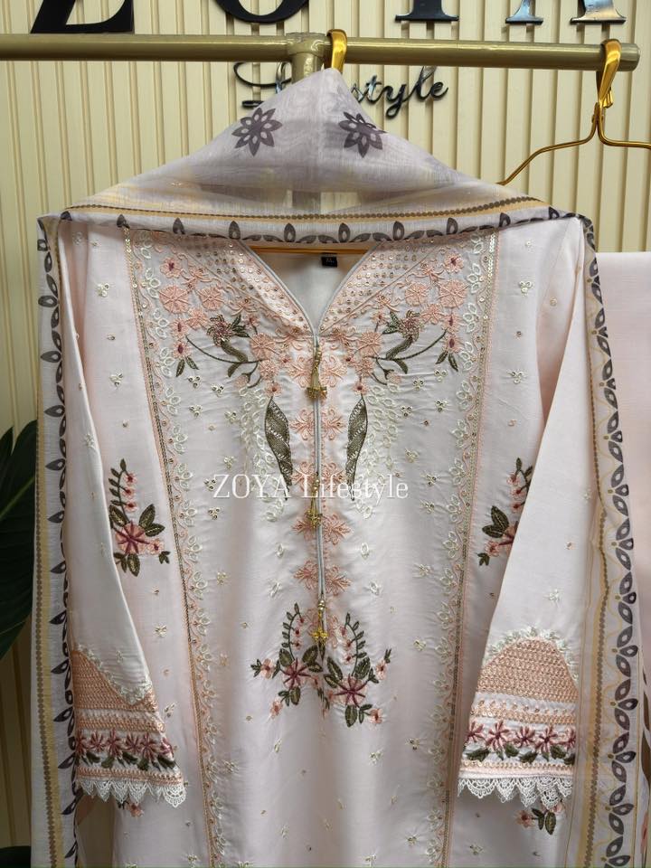 Material: Jacquard Cotton with embroidery and zero sequins work on body and sleeves. Maisuri cotton orna. Cotton Pant plazo style.