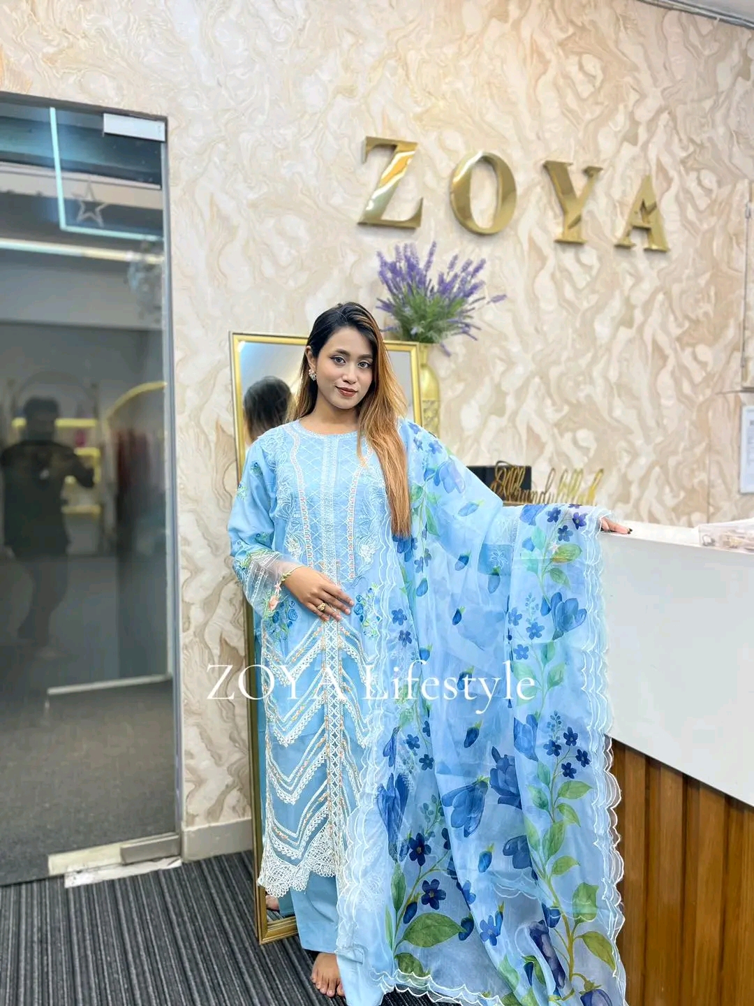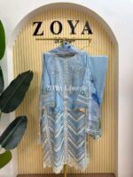 Material: Rayon Cotton kamiz with all over heavy embroidery work. cotton inner attached in the front part. Maslin kota printed dupatta with embroidery border. Pant Cotton.