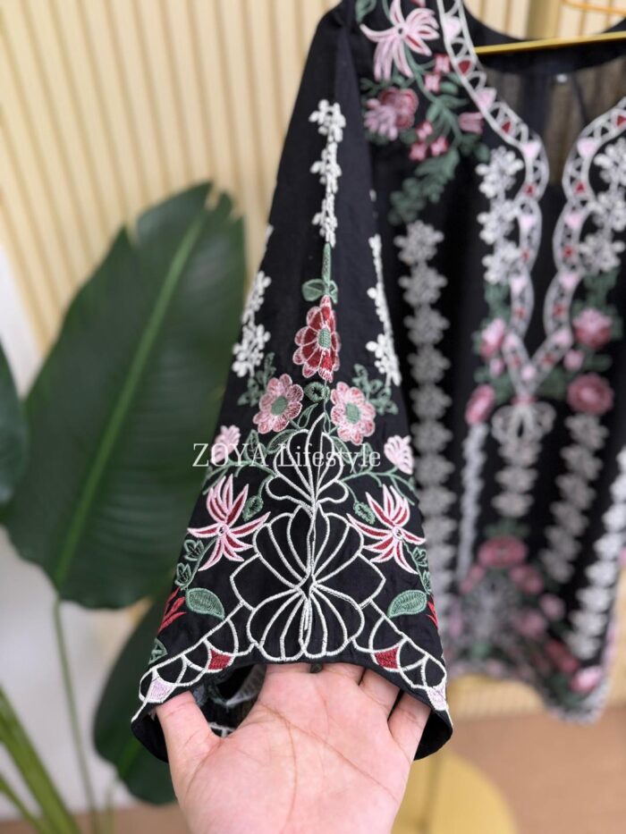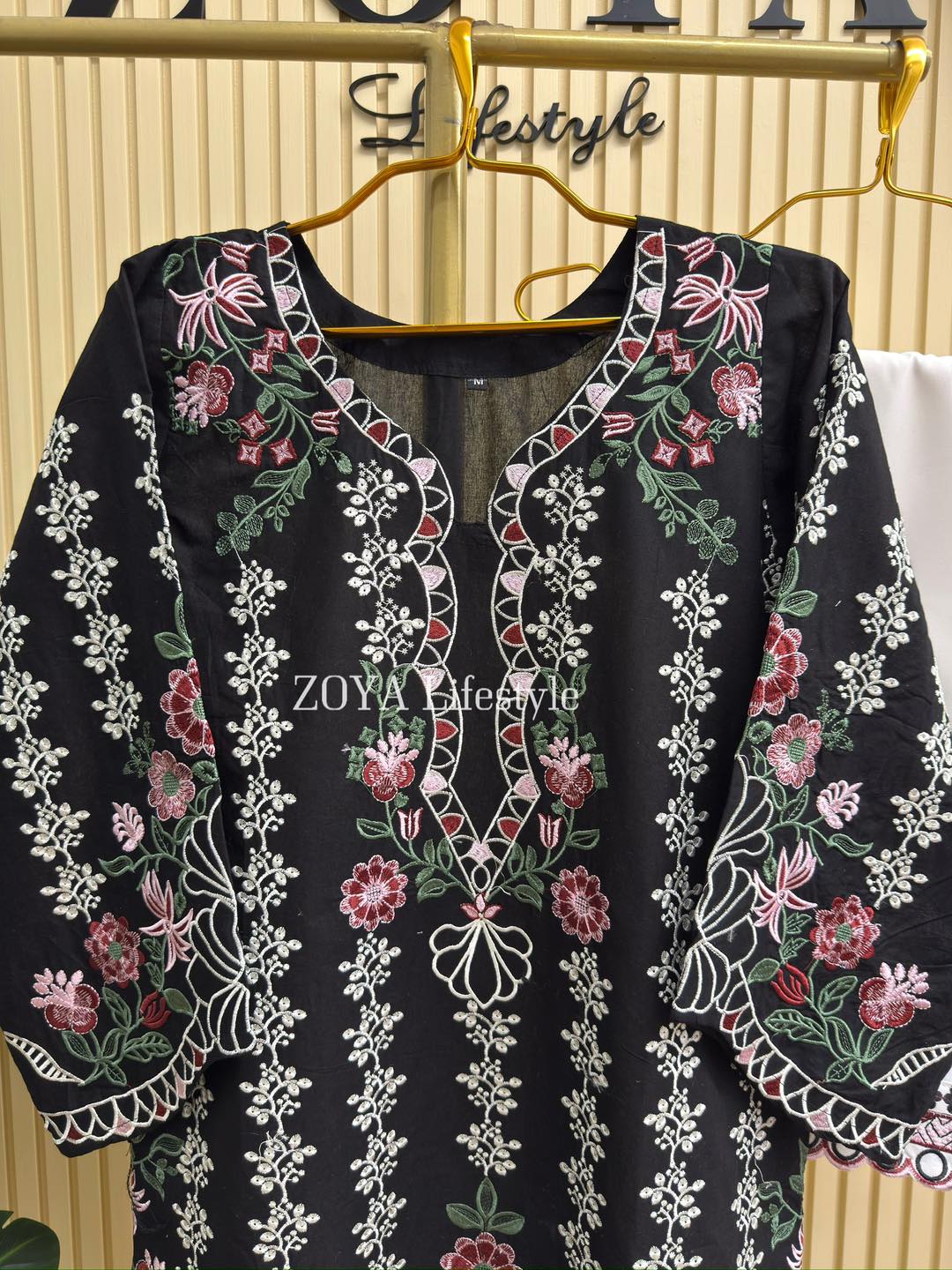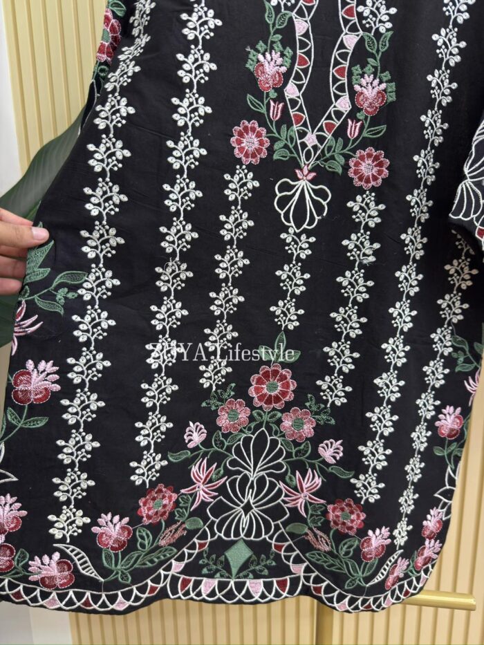 Material: Cotton kamiz with embroidery work on full body. Loose Pant silk Cotton with embroidered border.