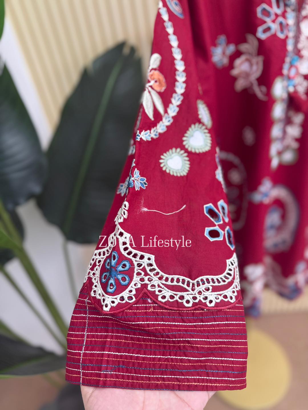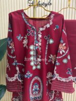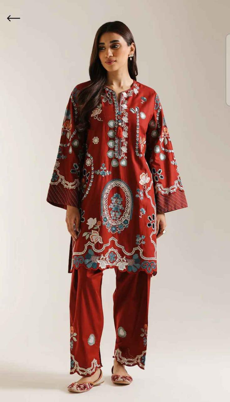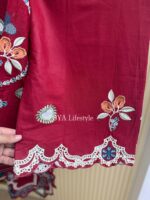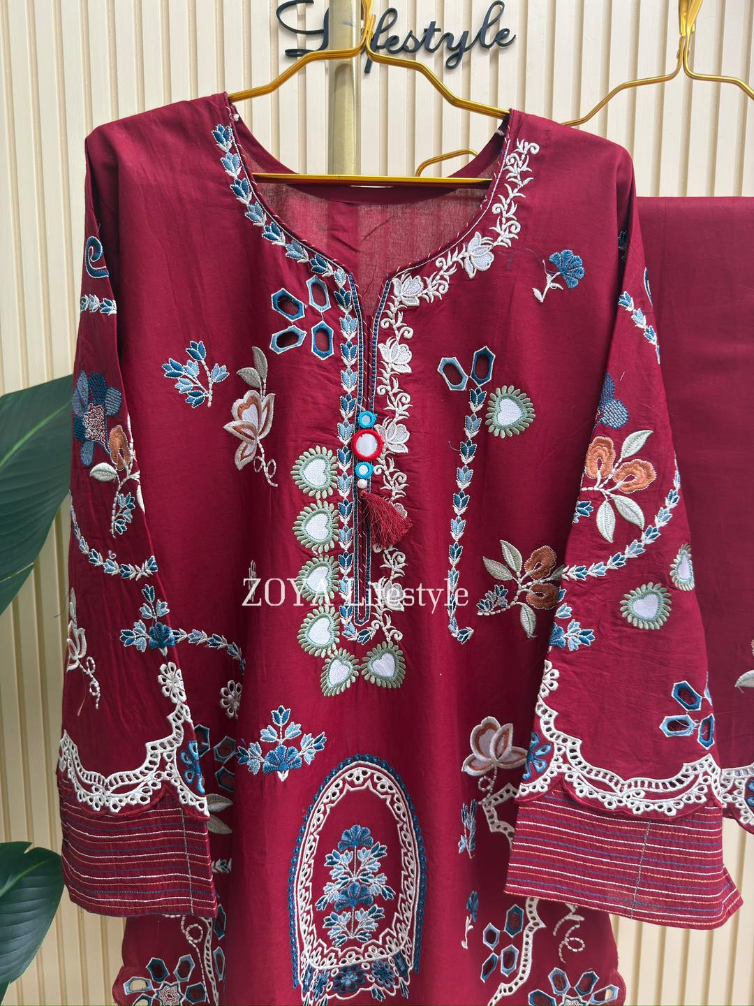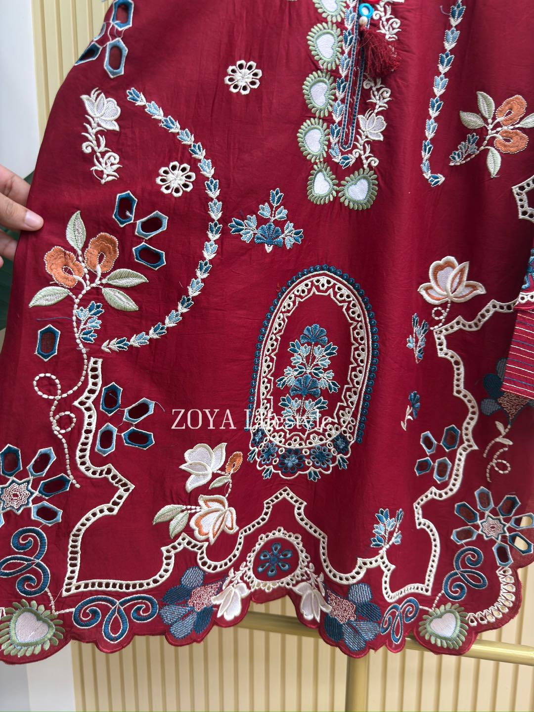 Material: Cotton kamiz with embroidery & cutwork work on full body. Half body front side inner attached. Loose Pant Cotton with embroidered border.