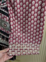 Material: Pure cotton with embroidery & lace work on full body. Mirror work on neck. Chinnon Silk full printed Farshi pant with jori border.