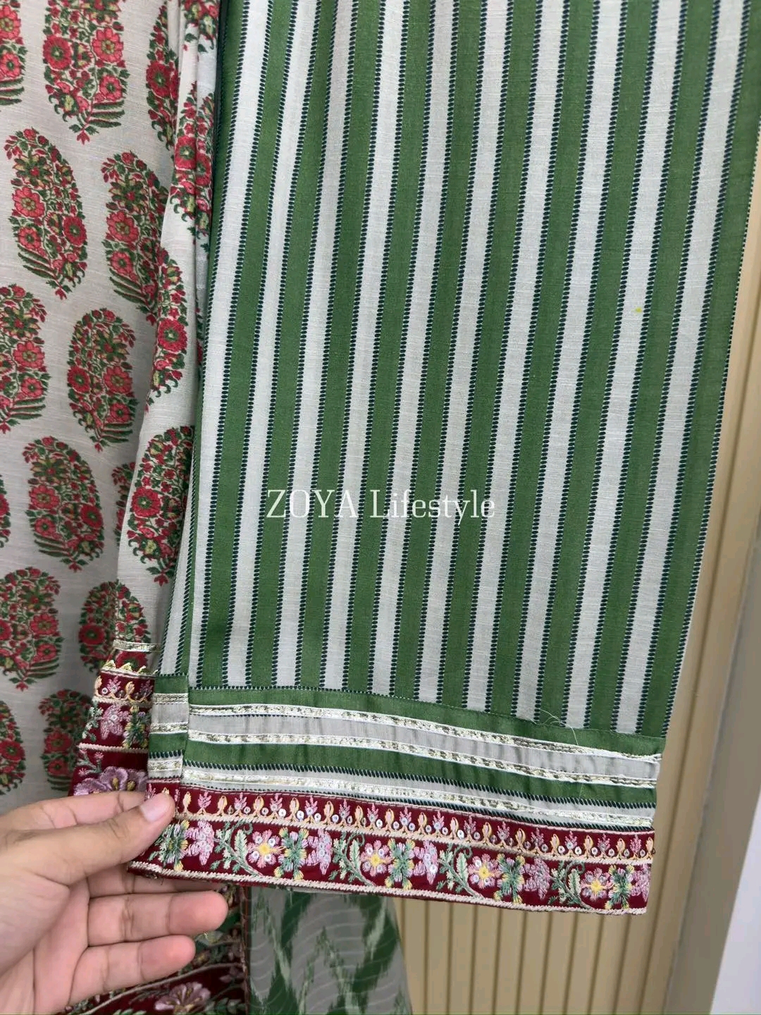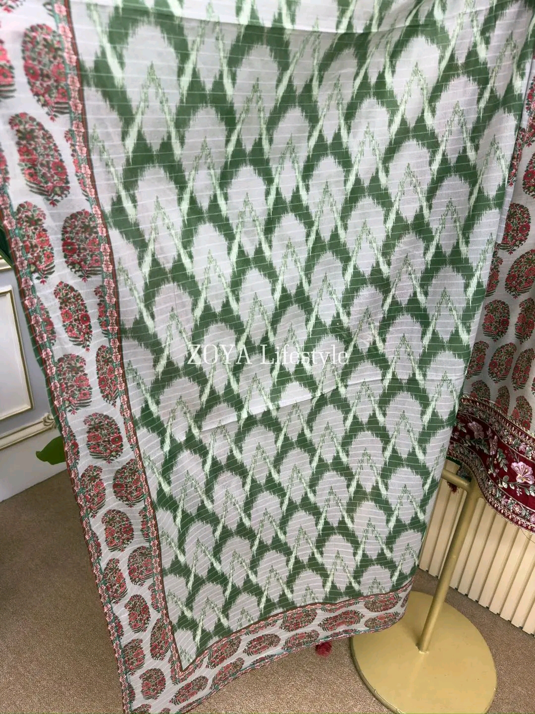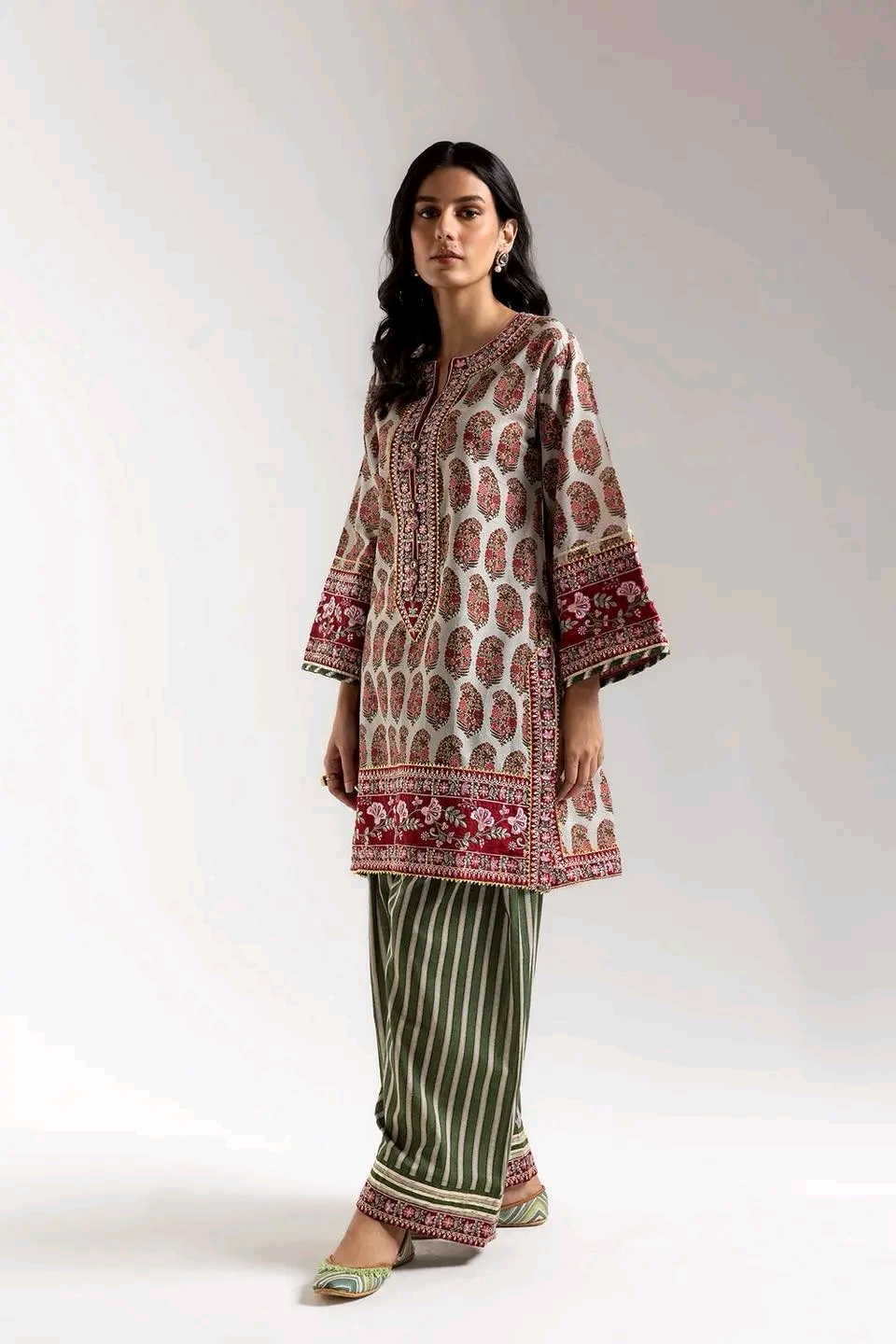 Material: Rayon silk Cotton with sequins embroidery work on neck, sleevee and damaan. Rayon silk Cotton pant with embroidered border. Kota cotton printed orna.