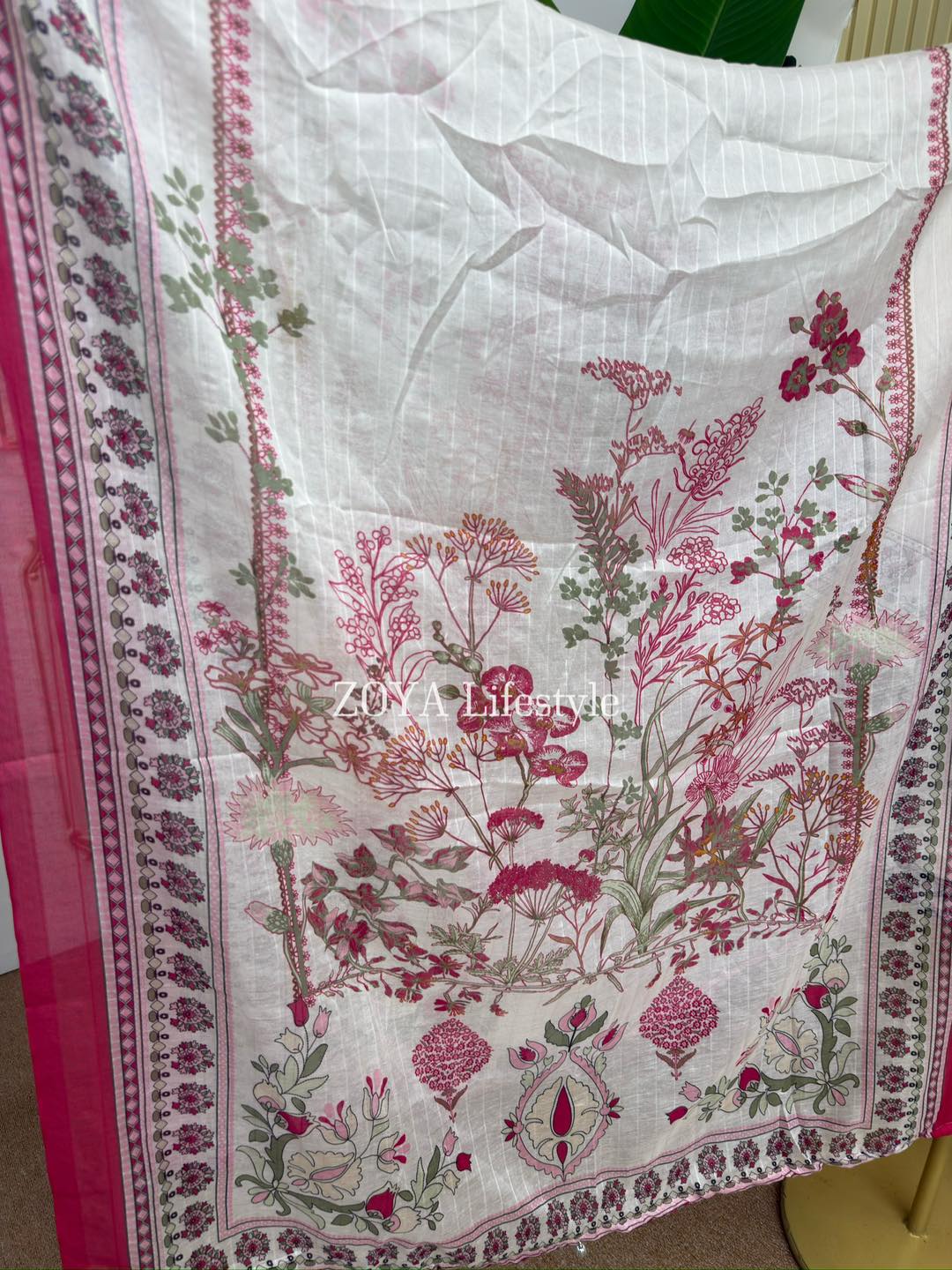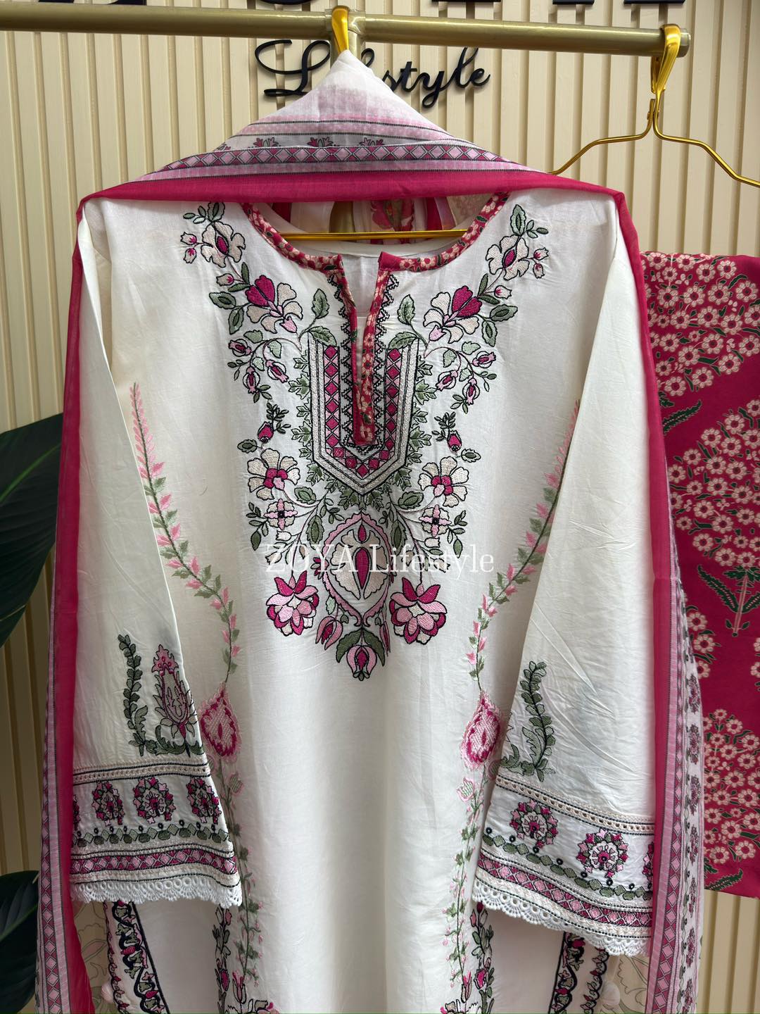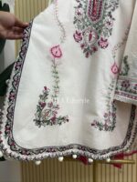 Material: Cotton kamiz with embroidery work on full front part. Inner is not mandatory to wear but If you need, You can. Farshi Pant silk Cotton printed. Cotton printed dupatta.