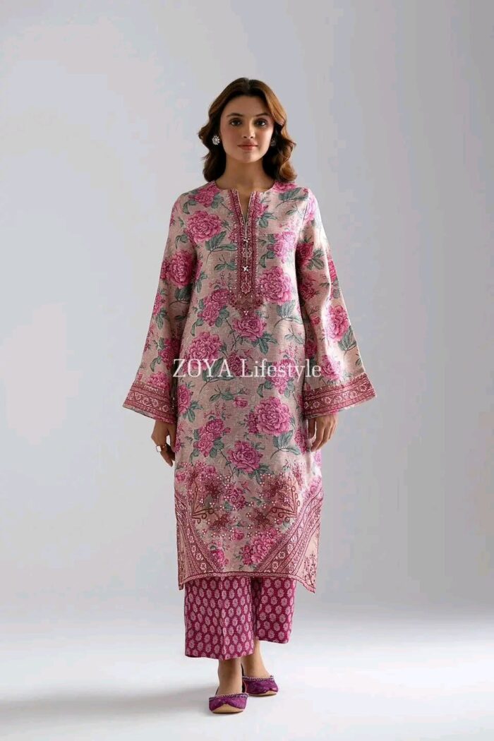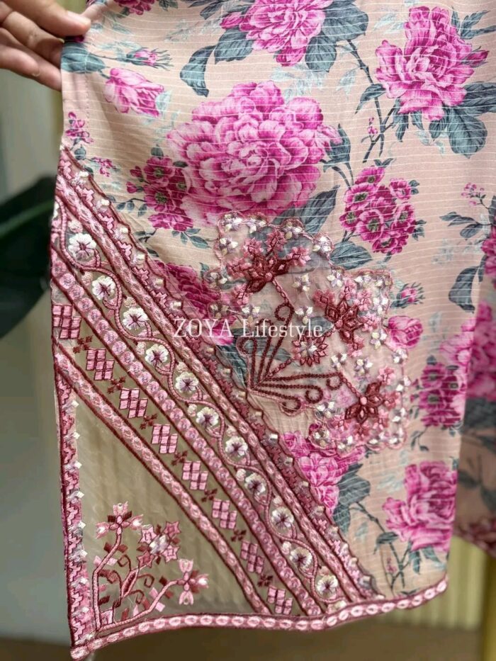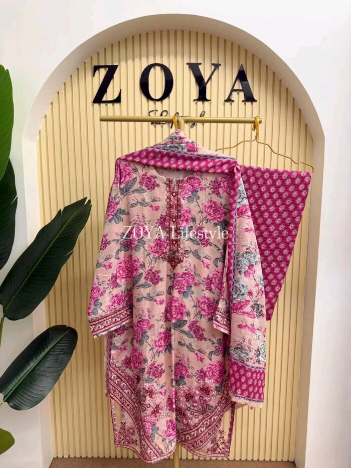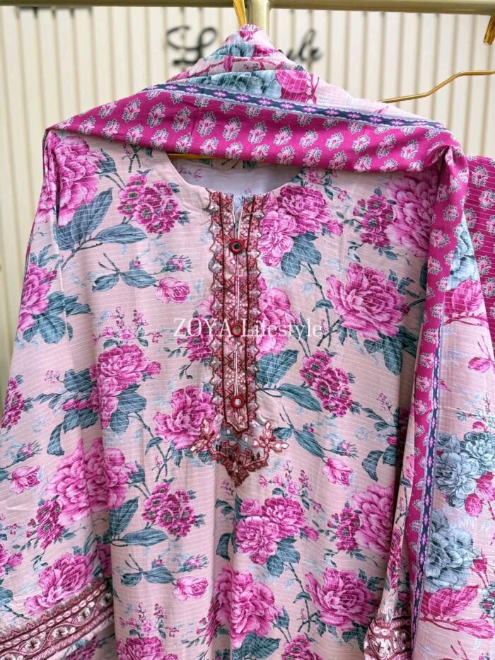 Material: Rayon Silk Cotton with embroidery on neck, sleeves and damaan. cotton orna. Rayon silk Cotton pant.