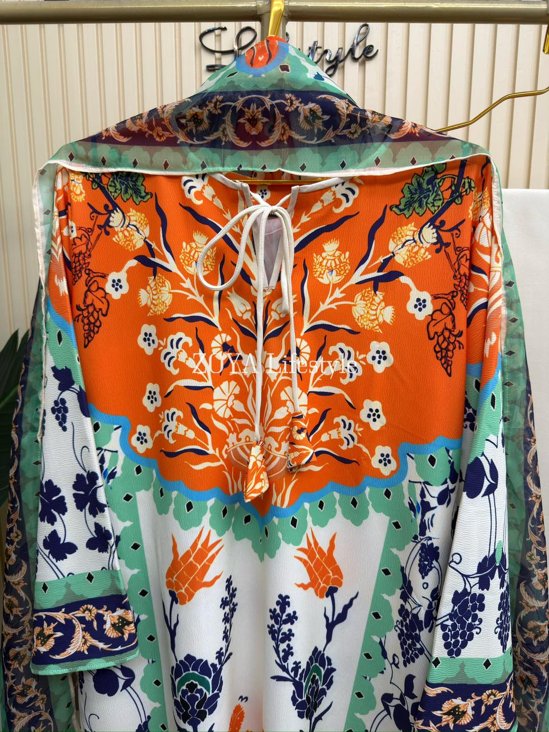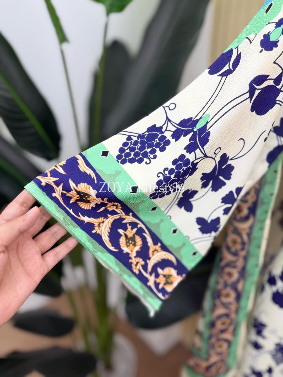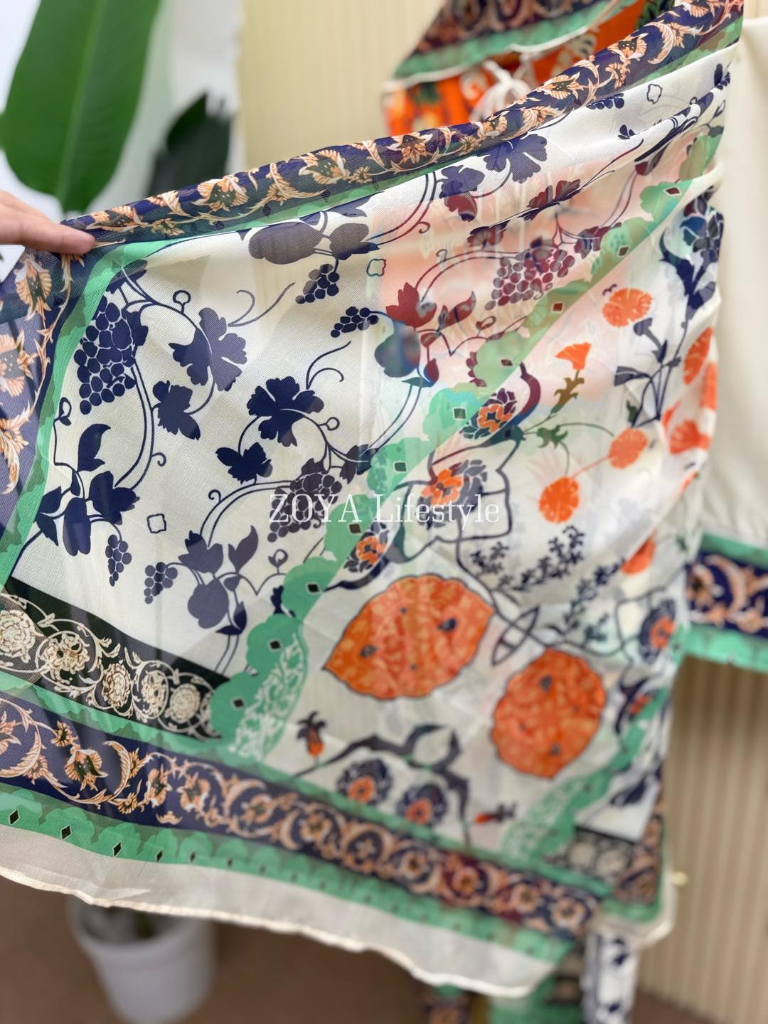 Material: Printed crepe Georgette. Plazzo Pant silk. Orna Georgette.