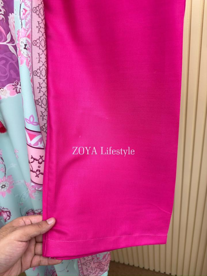 Material: Printed dubai cherry silk. Pant rayon cotton. Orna maisuri.