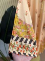 Material: Cotton Silk with digital print on whole body. Stylish tassel on neck. Button work on sleeves. Pant Cotton silk.
