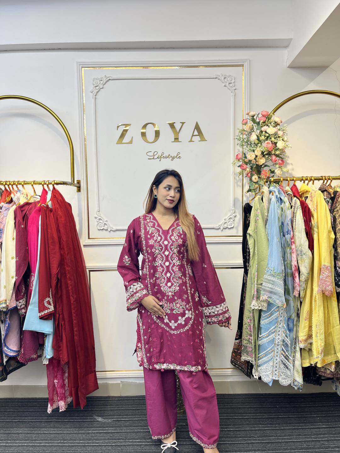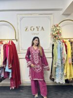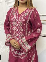 Material: Cotton kamiz with all over heavy embroidery work. Pant Cotton with embroidery work.