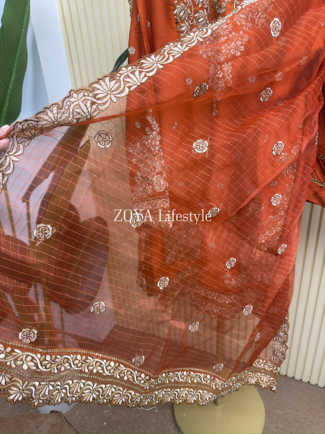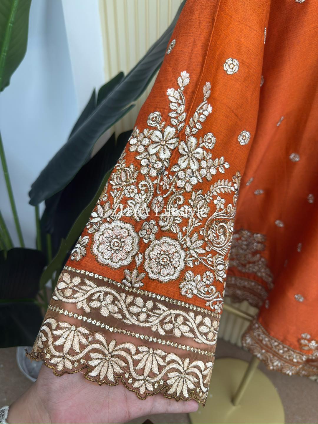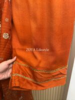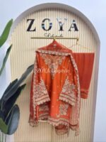Material: Premium Silk Cotton kamiz with jori embroidery work on full kamiz. Farshi Pant silk Cotton with lace border. Net Orgenza fabric embroidered dupatta.