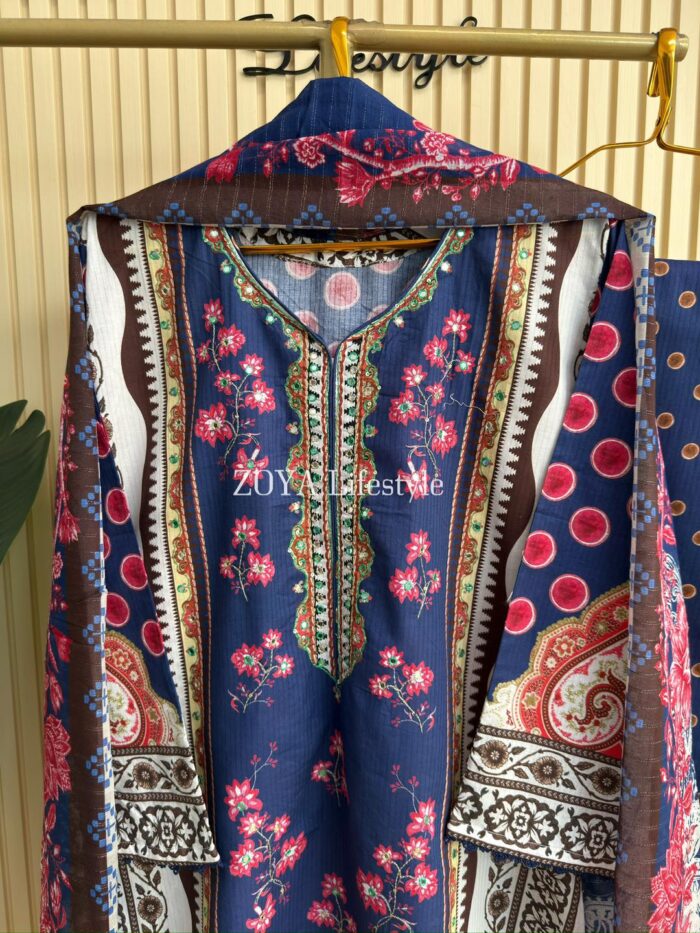 Pakistani inspired stitched 3 piece kamiz set 2,150.00৳