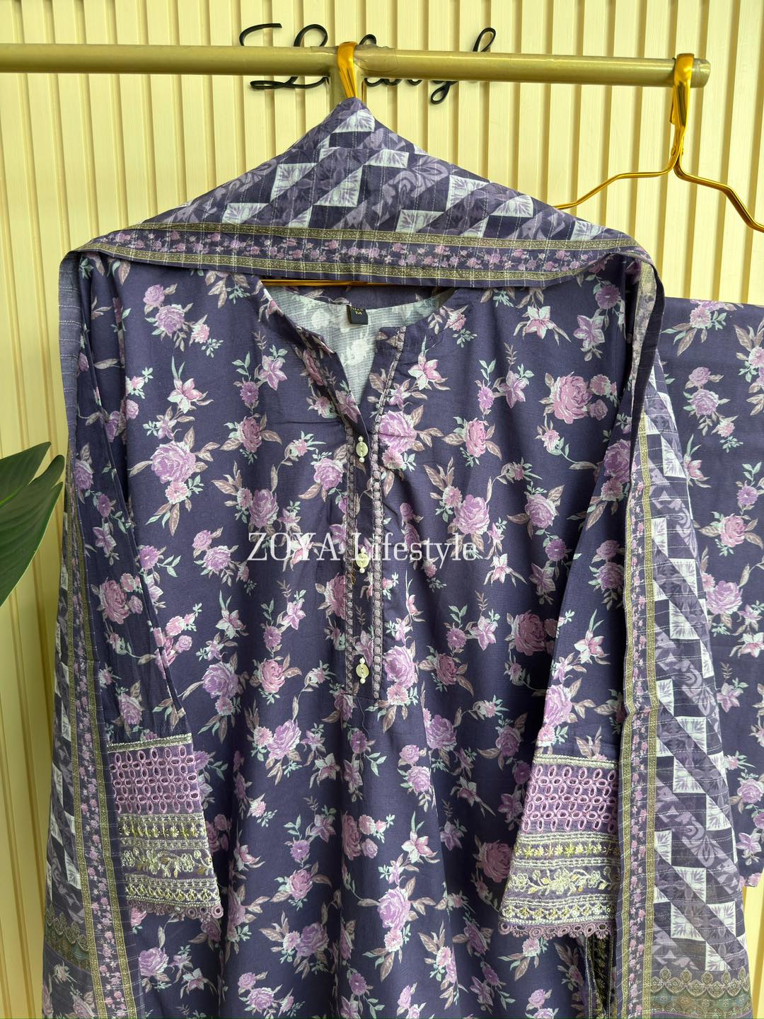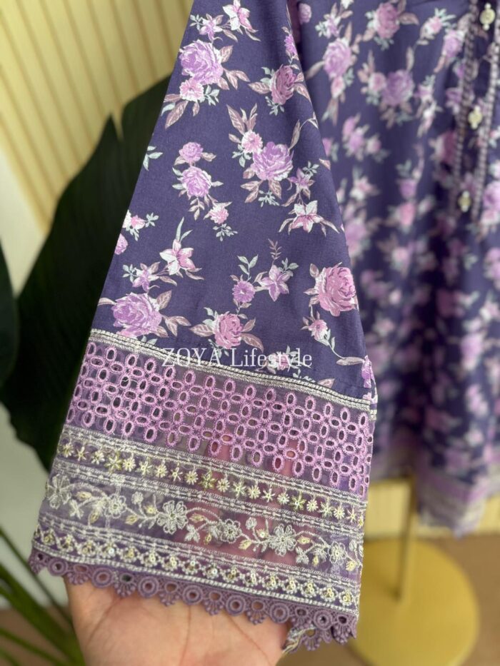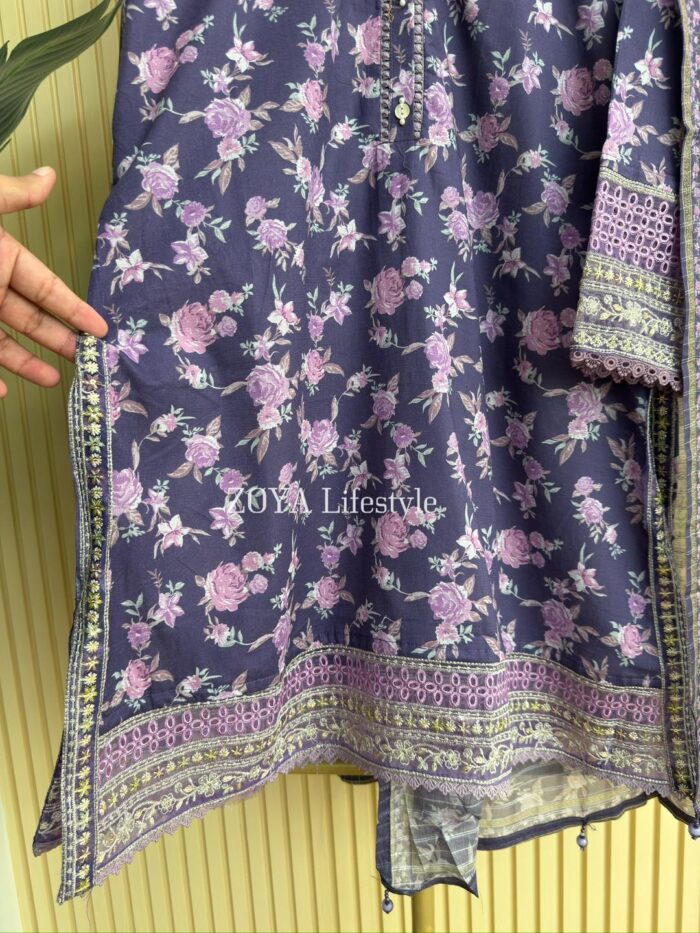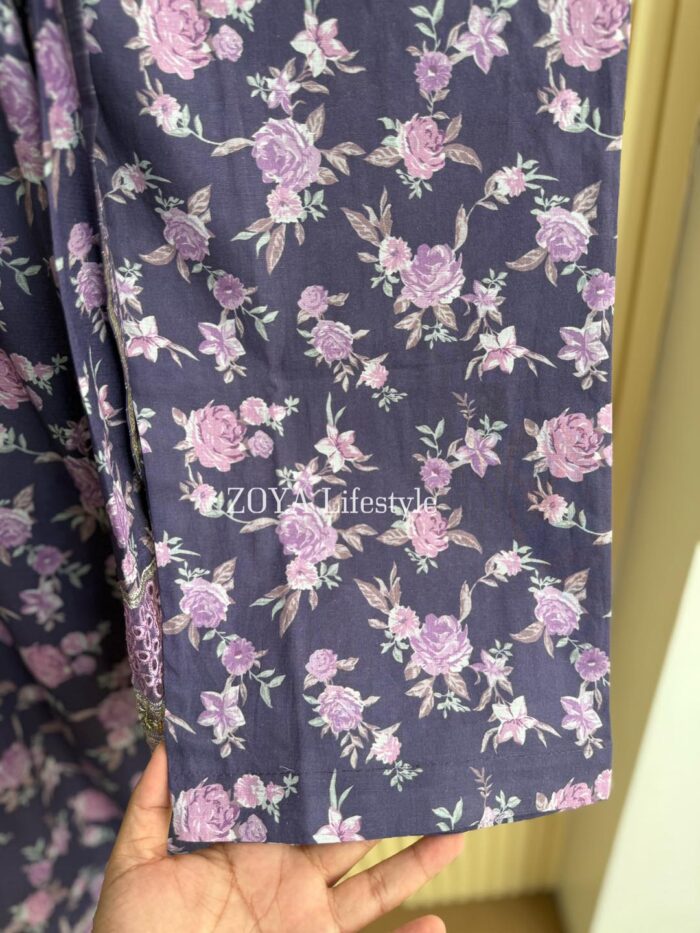 Material: Cotton with sequins embroidery on sleeves, front-back part damaan and front- back side border. Kota Cotton printed dupatta. Cotton pant