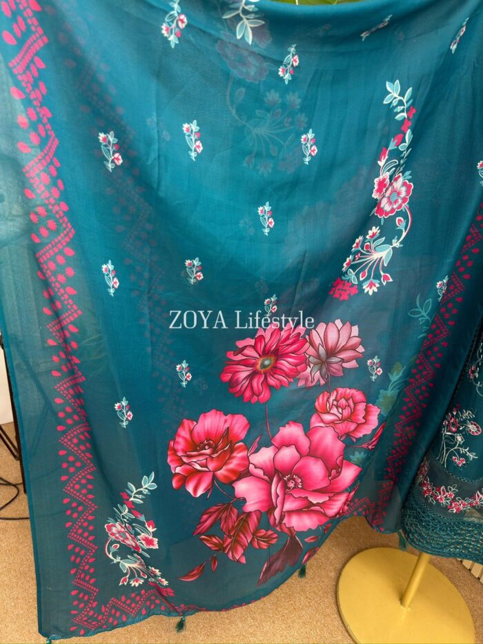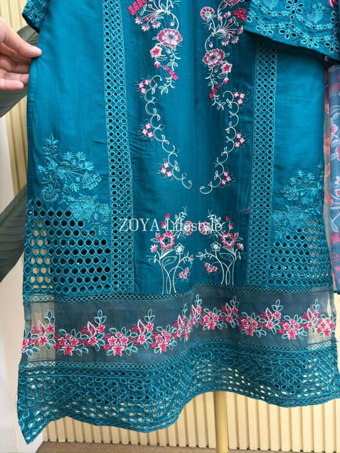 Material: Cotton kamiz with heavy chikankari embroidery work on full kamiz. Front side full boy cotton inner attatched. Maisuri silk cotton printed orna. Pant Cotton.