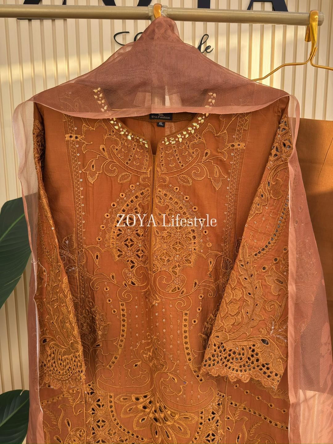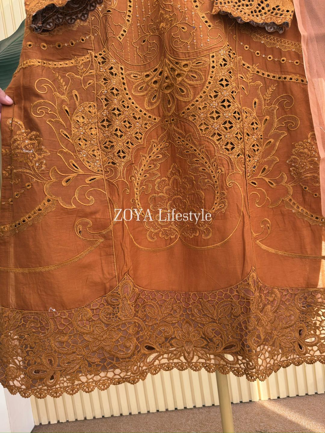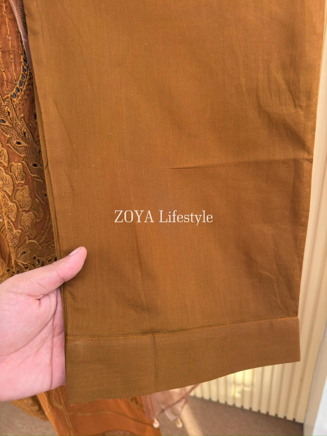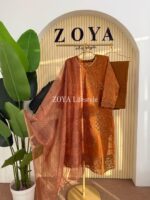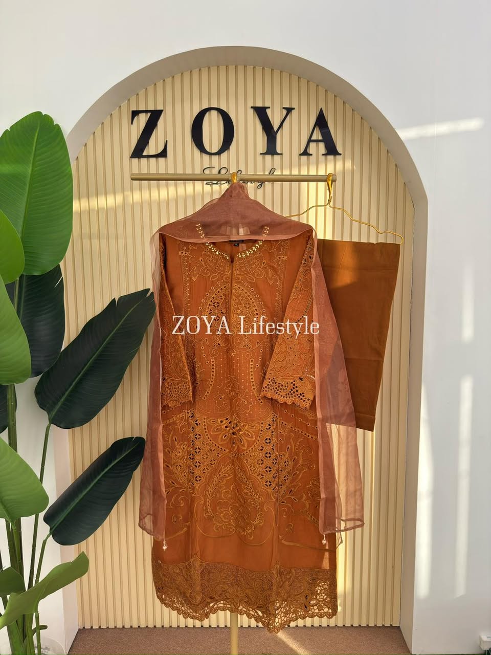 Material: Cotton kamiz with all over heavy chikankari embroidery work. Stone work on neck. cotton inner attached in the front part. Kota printed dupatta. Pant Cotton.