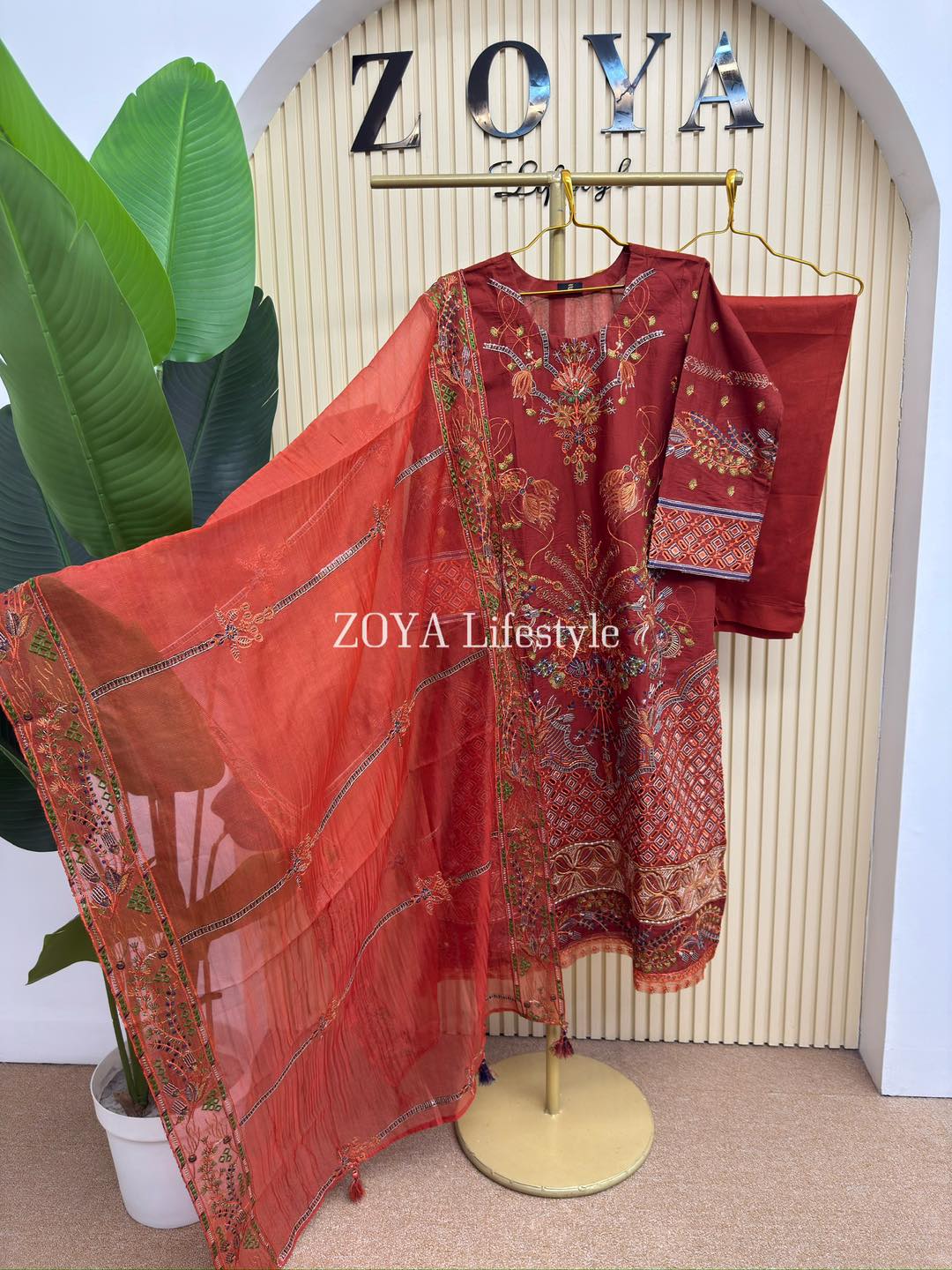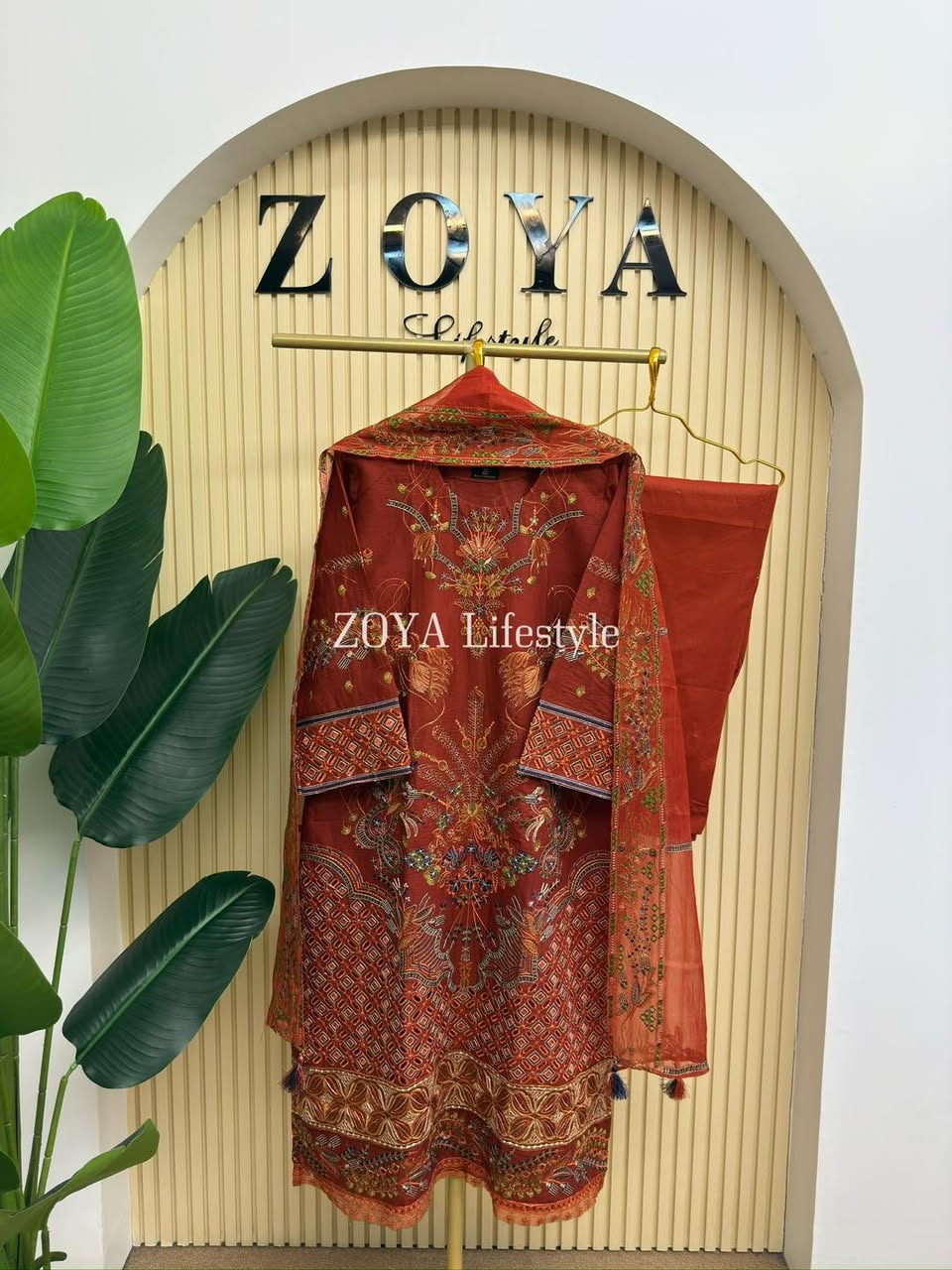 Pakistani inspired stitched 3 piece kamiz set 2,050.00৳
