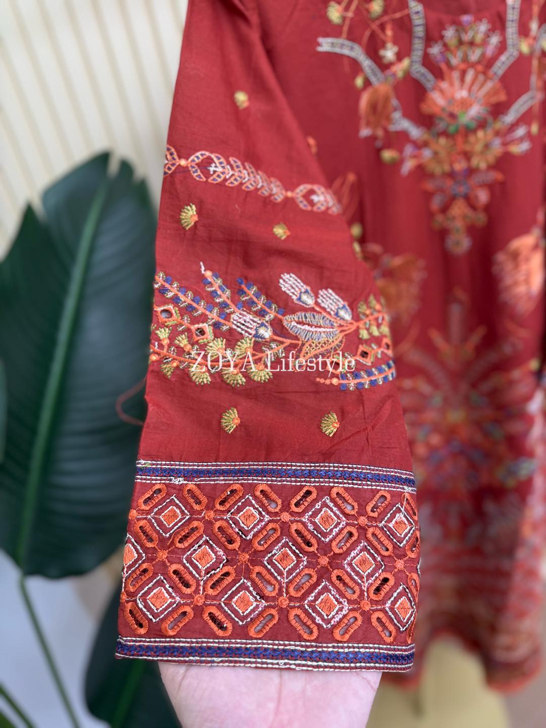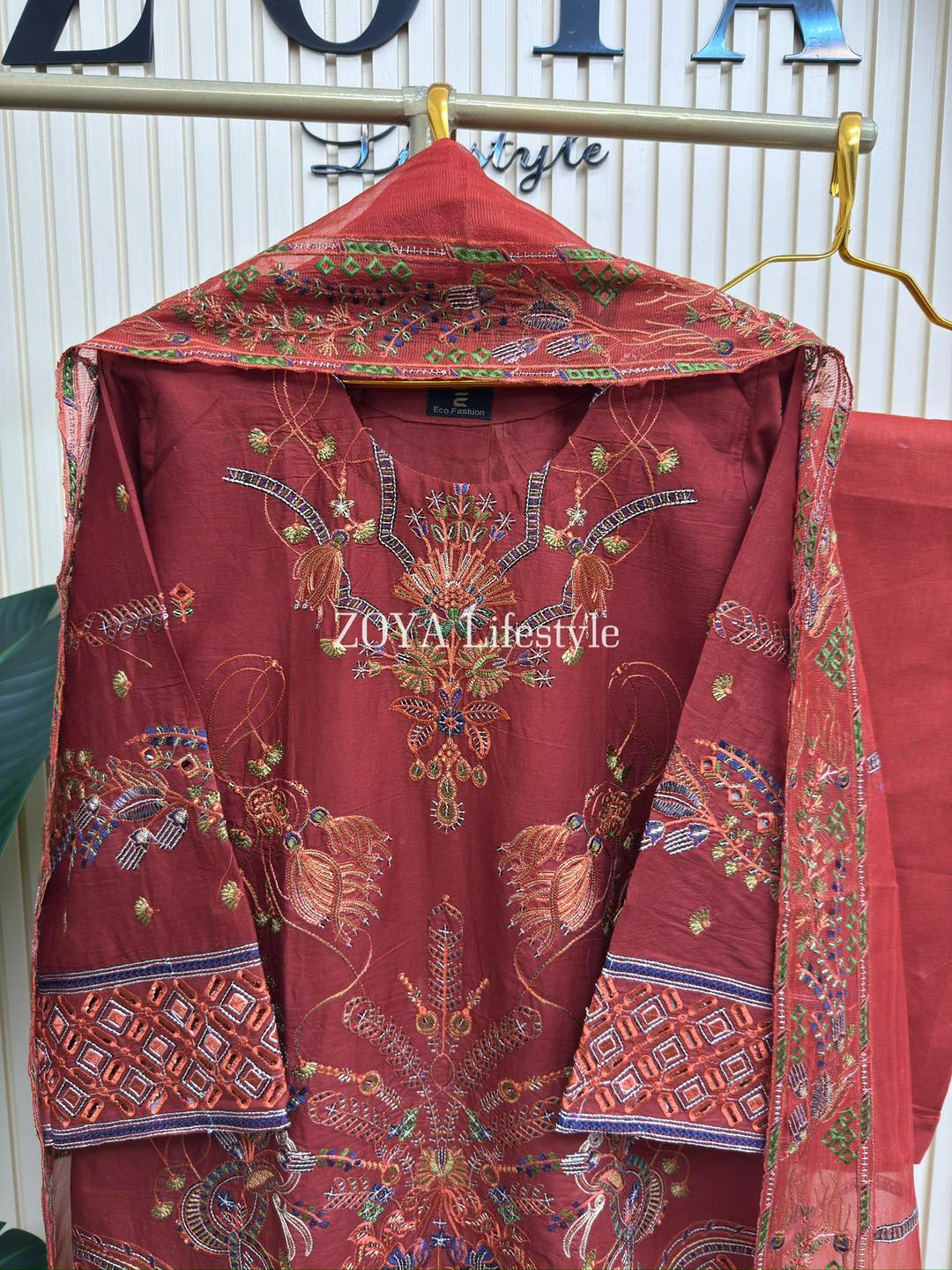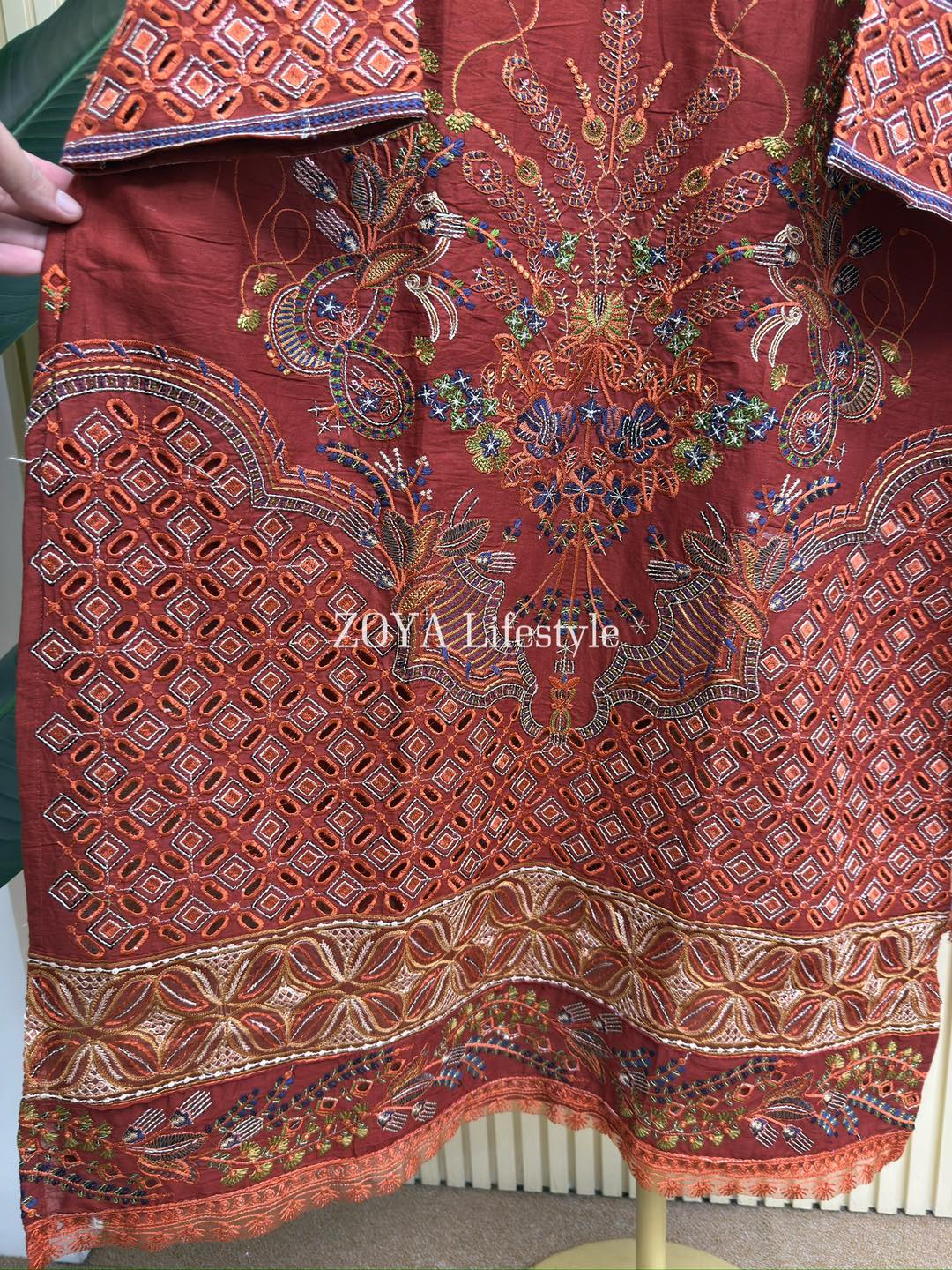 Material: Cotton kamiz with embroidery work on full body. Kota embroidered orna. Cotton pant.