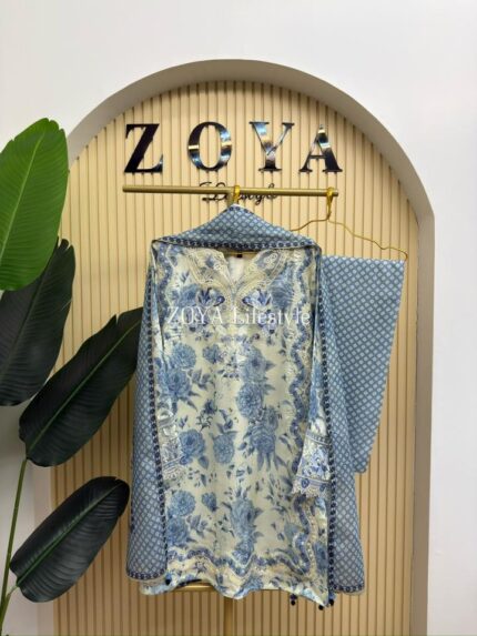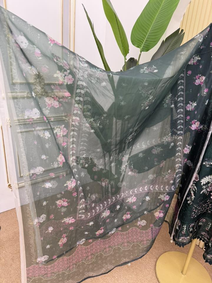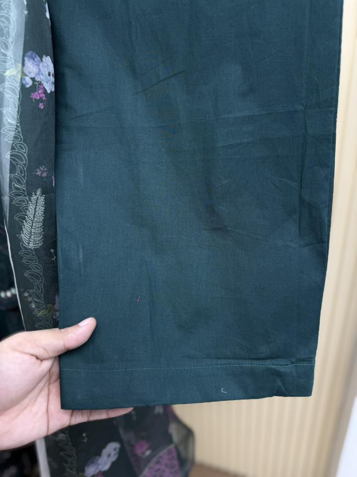Material: Cotton kamiz with embroidered work on body and sleeves . Maslin printed orna. Cotton pant.