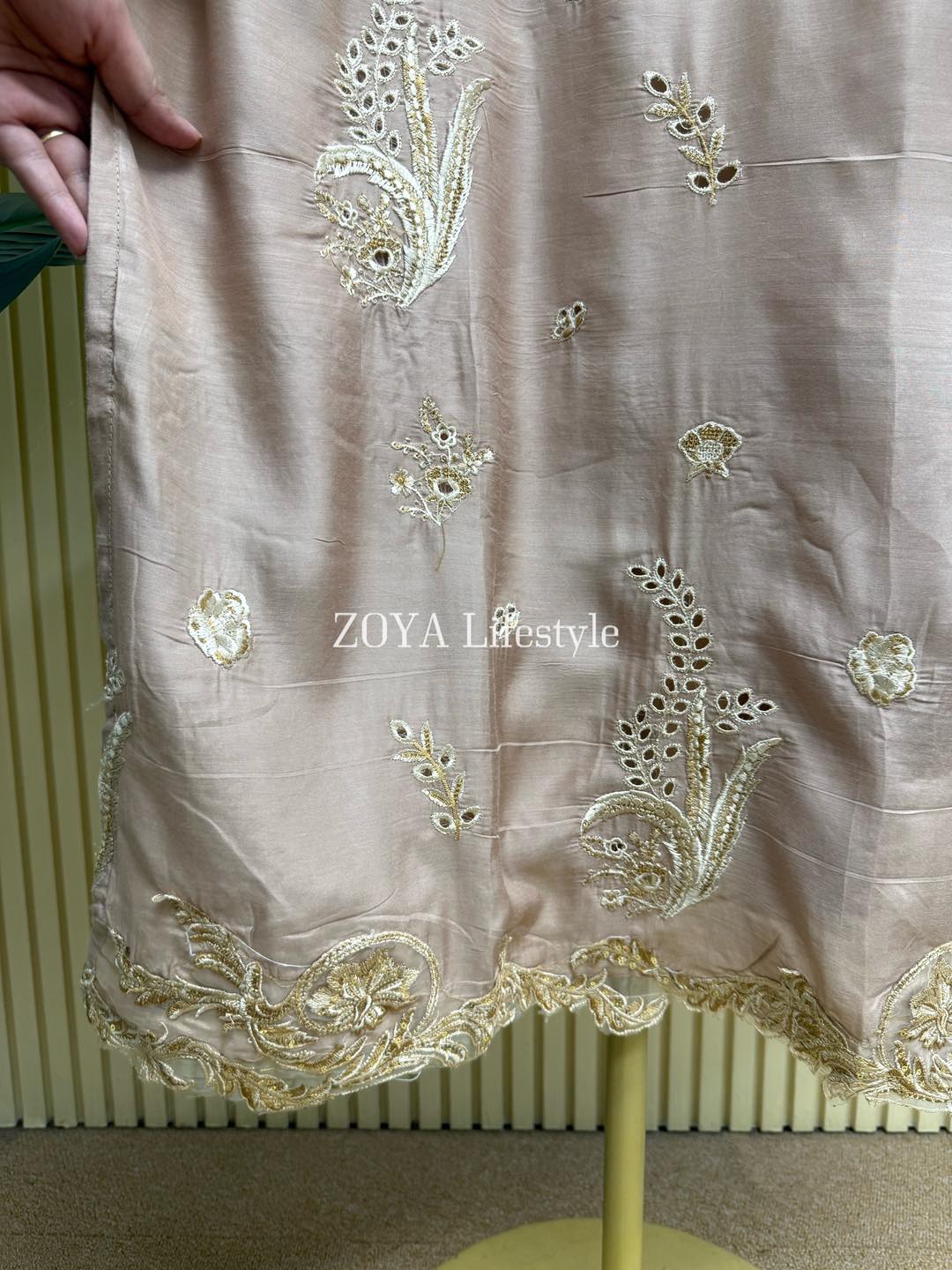 Material: Rayon Silk Cotton with chikankari embroidery on full body. Half body inner attached. Kota embroidered orna. Cotton pant.